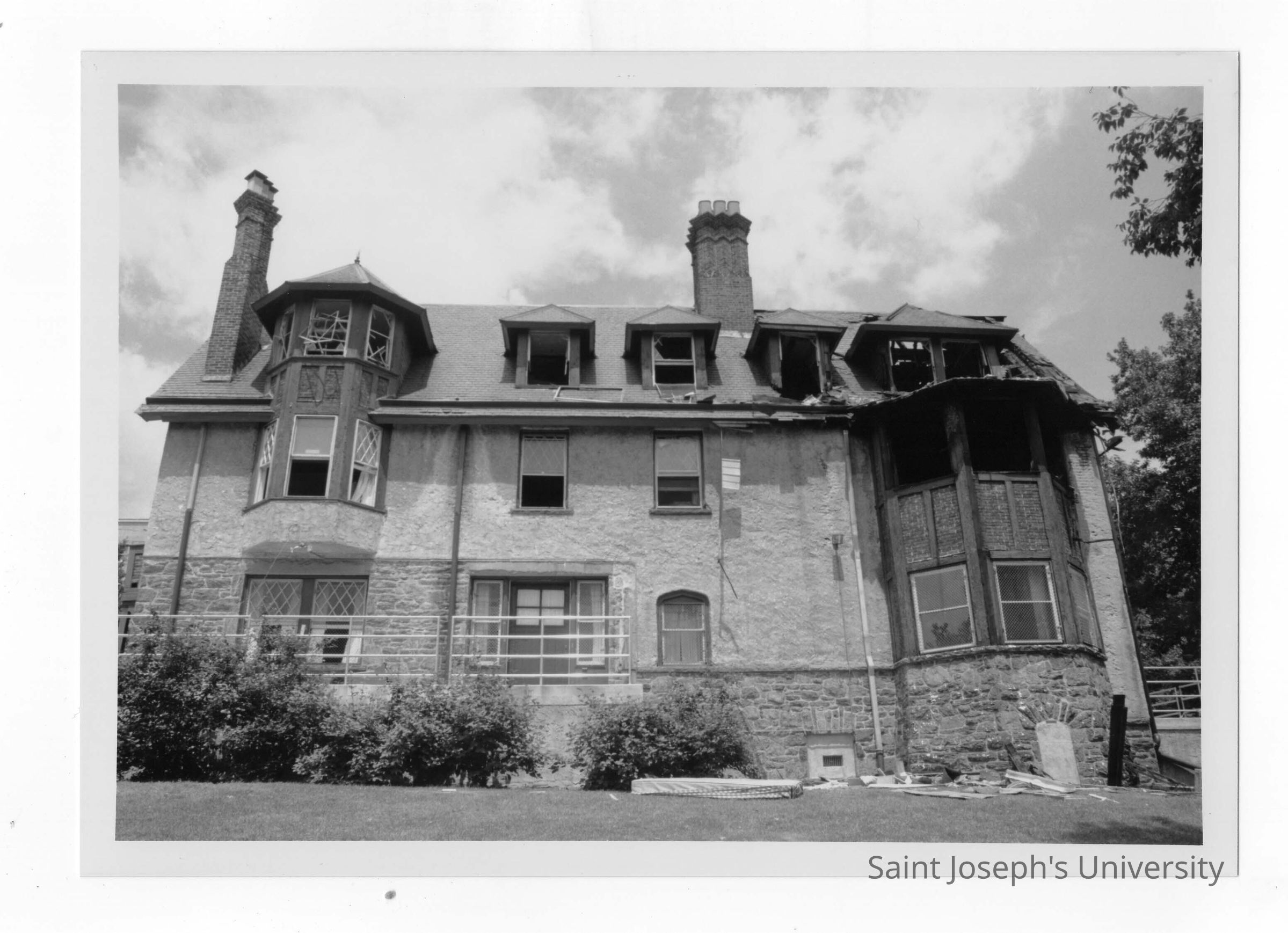 Exterior view of Simpson Hall after fire.