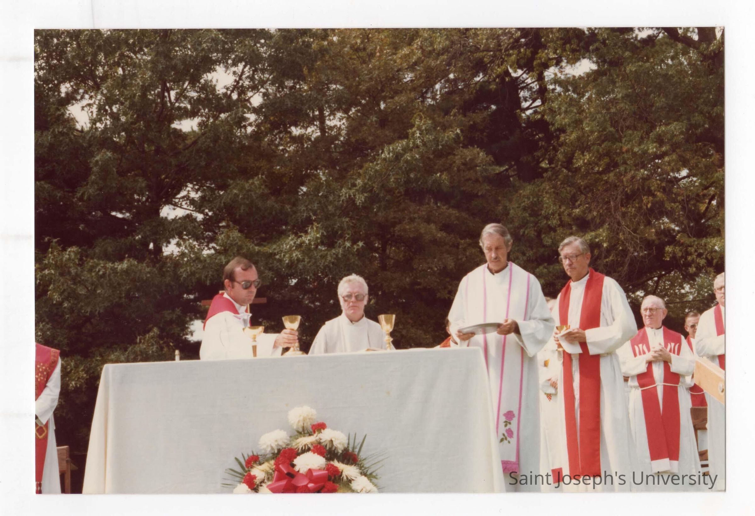 Thomas F. Gleeson, S.J. and others at Mass during dedication of Sourin Residence Center.