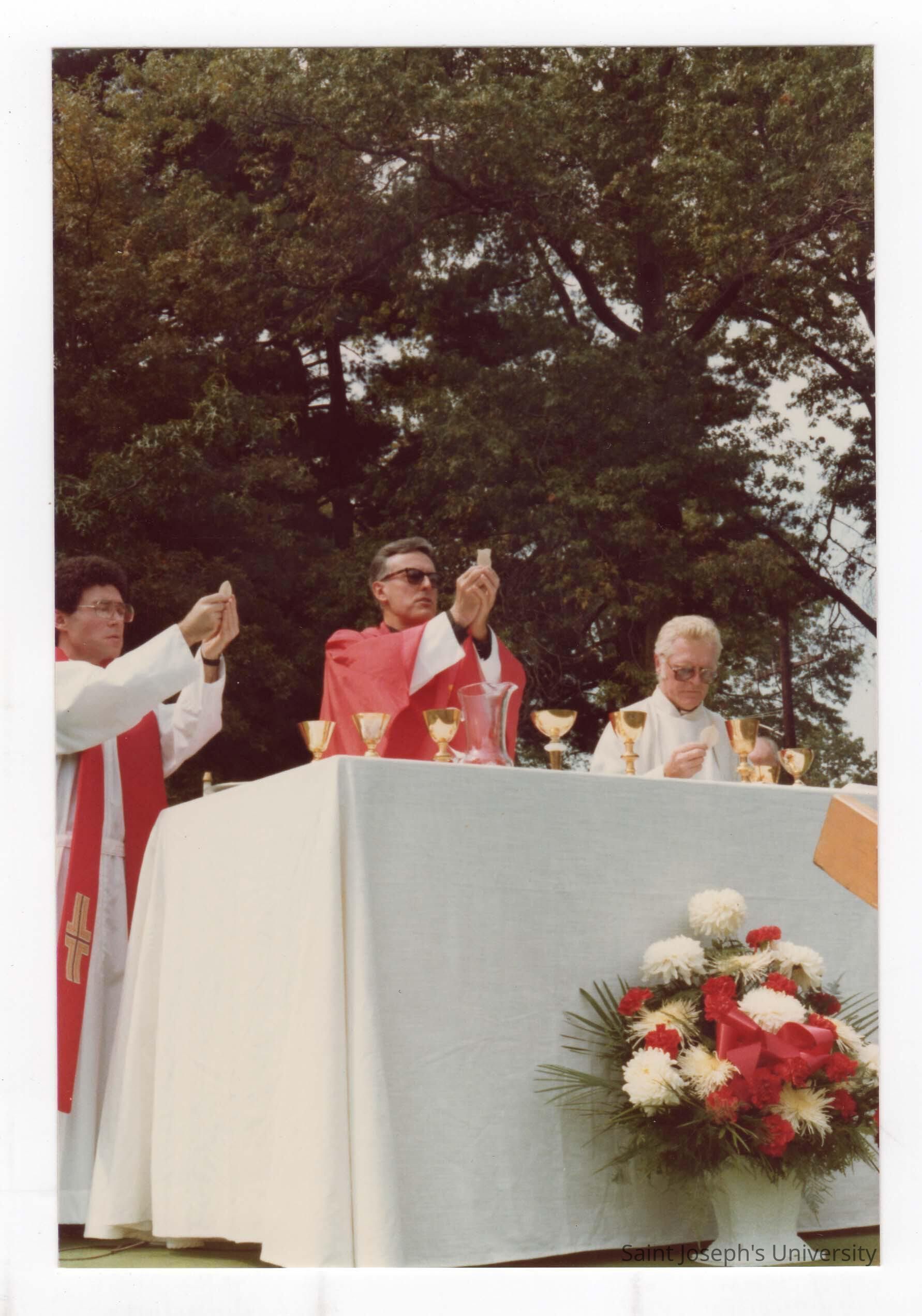 Mass at Sourin Residence Center dedication with Donald I MacLean, S.J. and others.