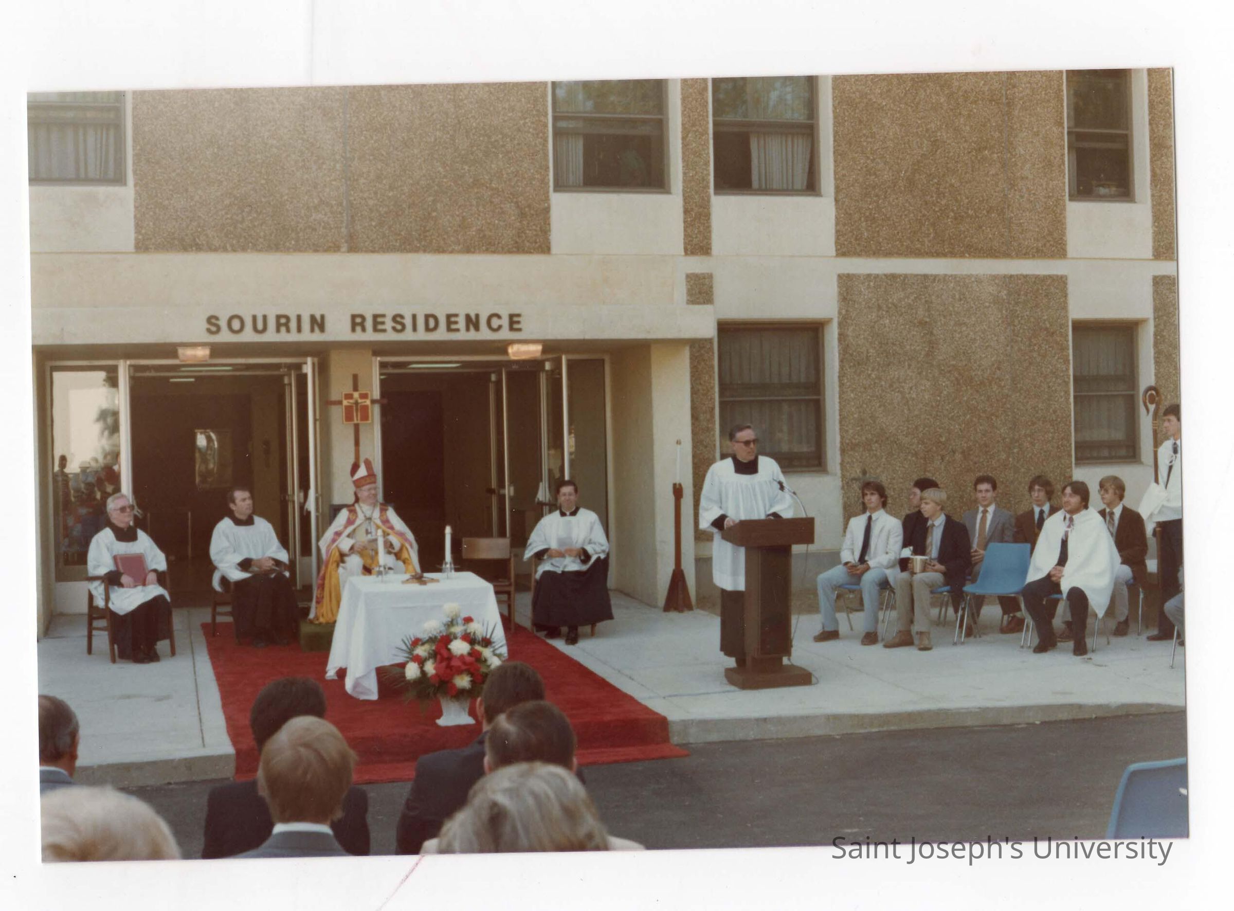 Dedication of Sourin Residence Center with Rev. Francis B. Schulte, Donald I. MacLean, S.J. and others.