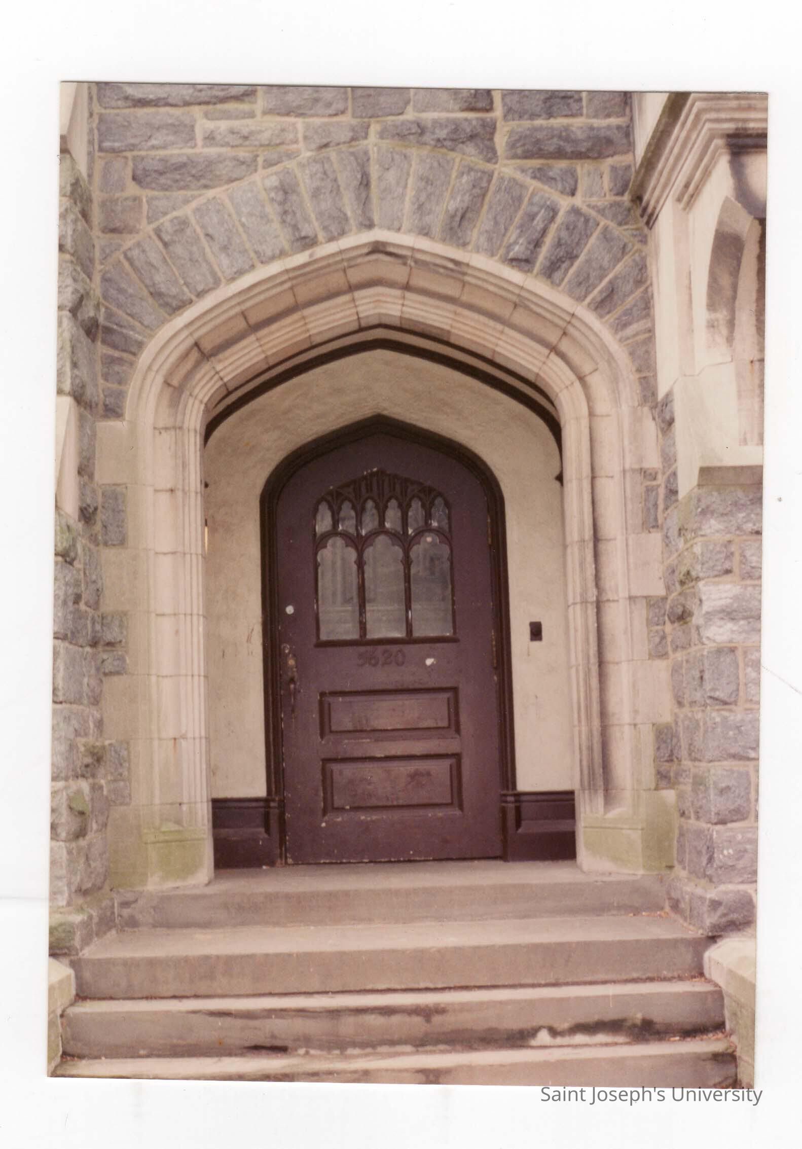 View of entryway and door of Wolfington Center (formerly Gest Estate, Neumann Hall).