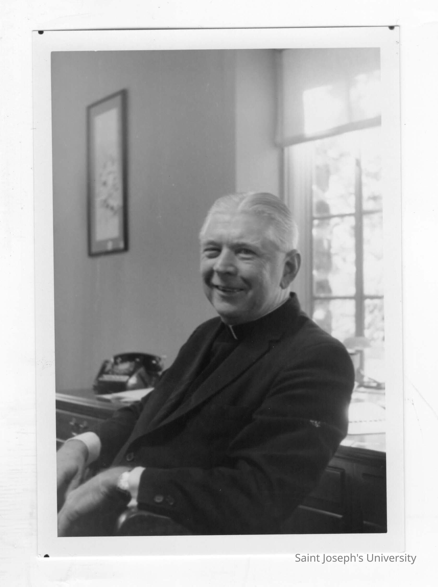 Lawrence R. McHugh, S.J., sitting in his office.