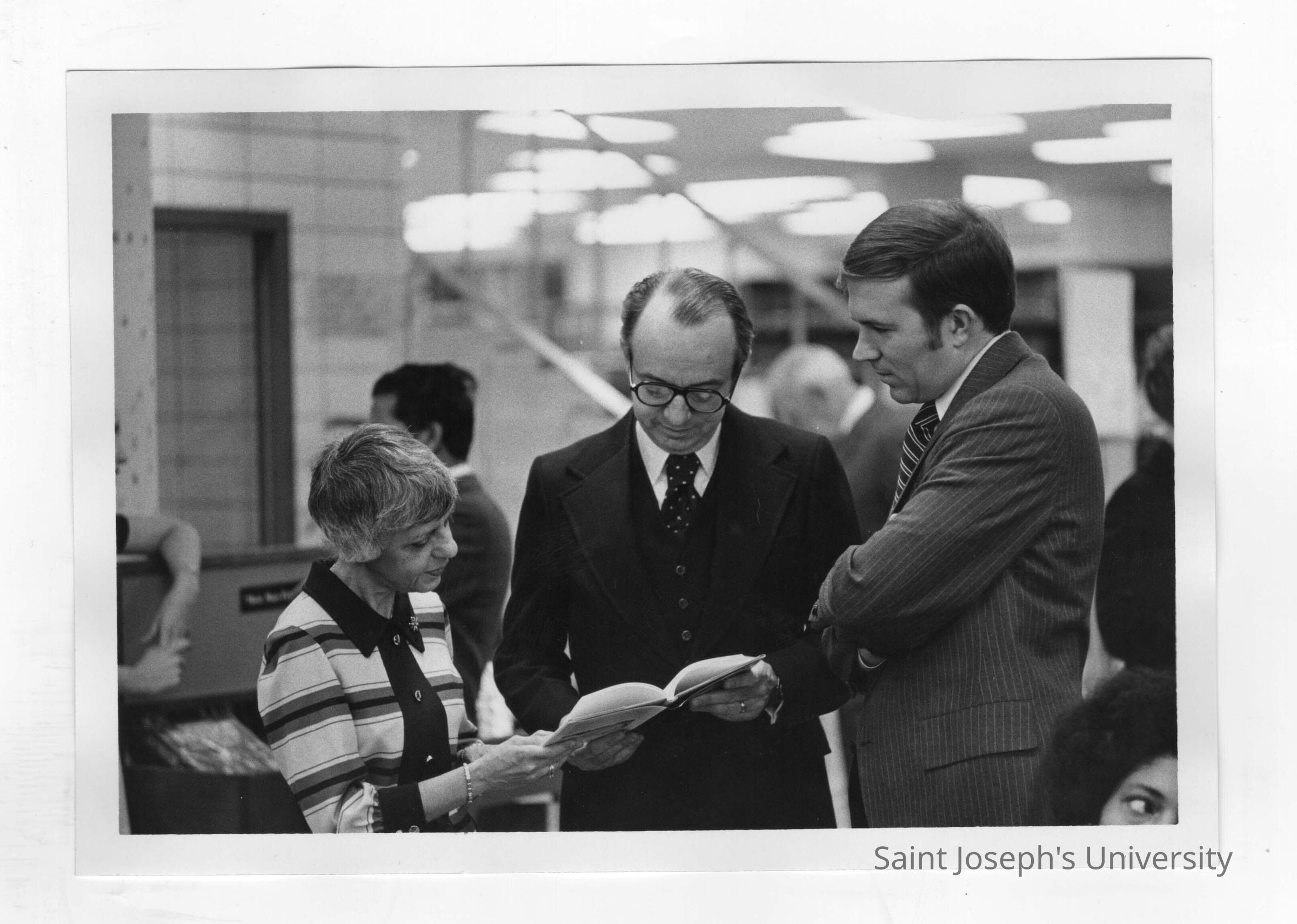 Thomas P. Melady with Josephine Savaro and another individual in library.