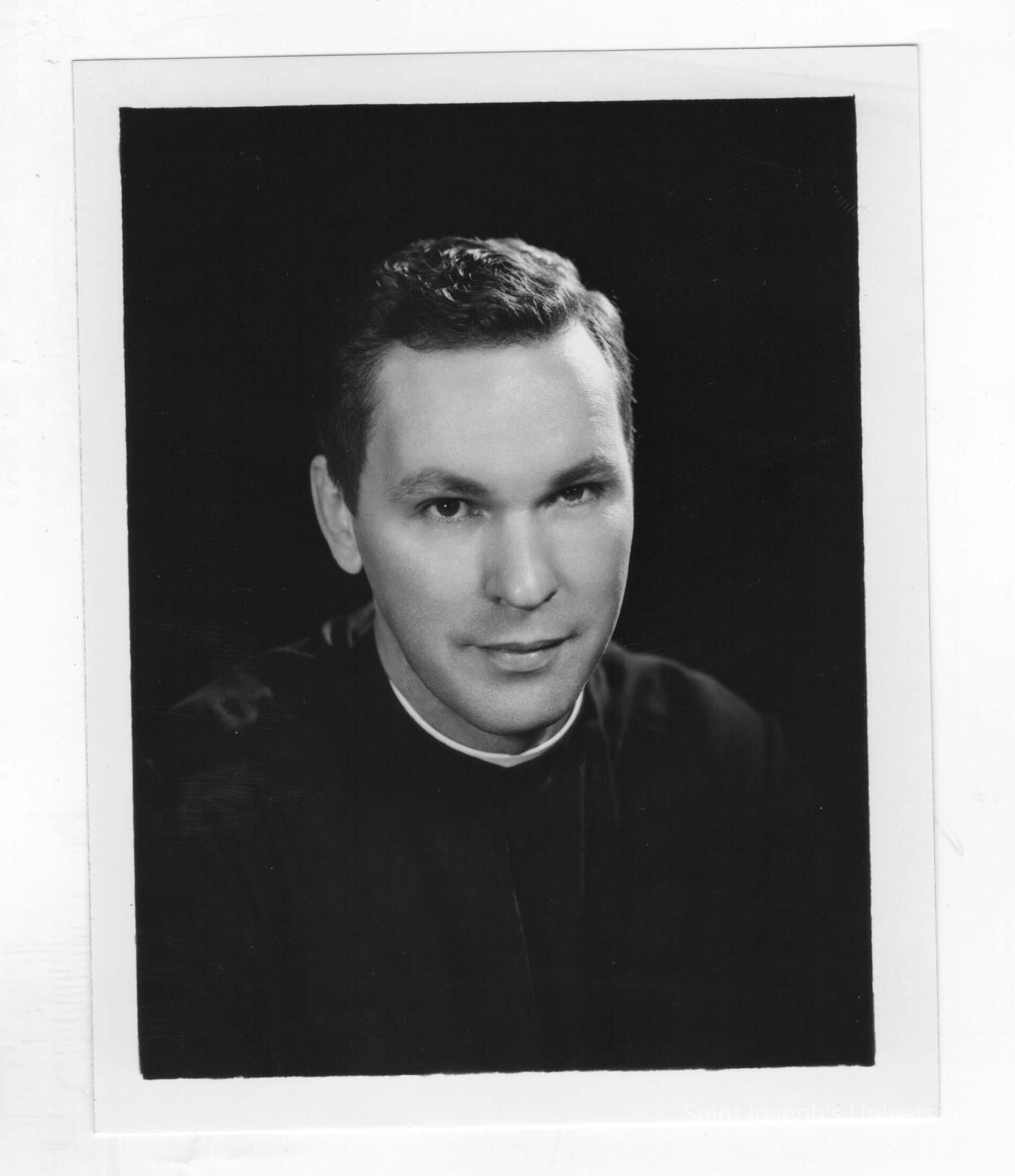 James W. Moore, S.J., Assistant Dean of Admissions. One photo is portrait, and the other is of Moore standing at filing cabinet.