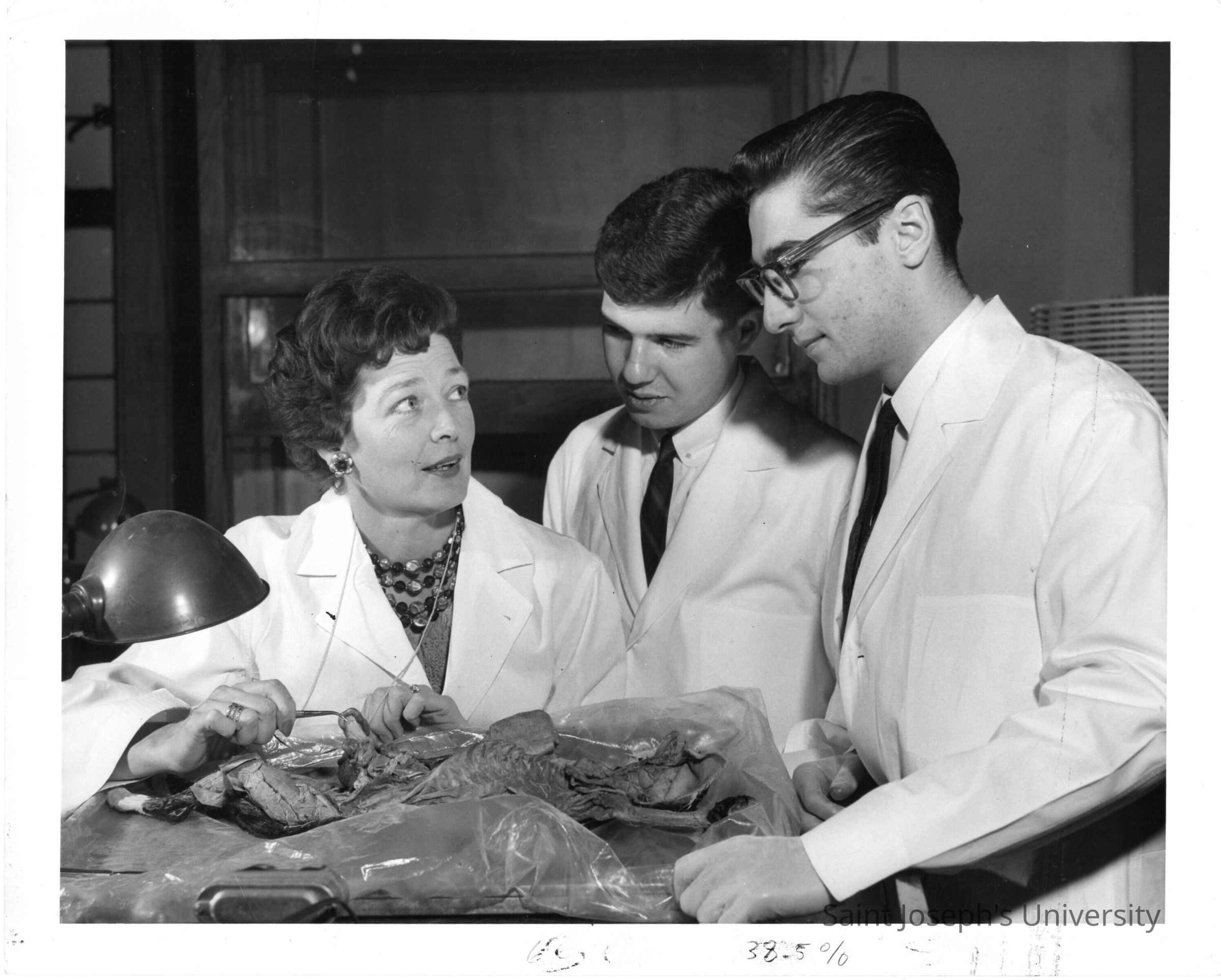 Catherine "Kay" Nash (Biology) working with students in laboratory.