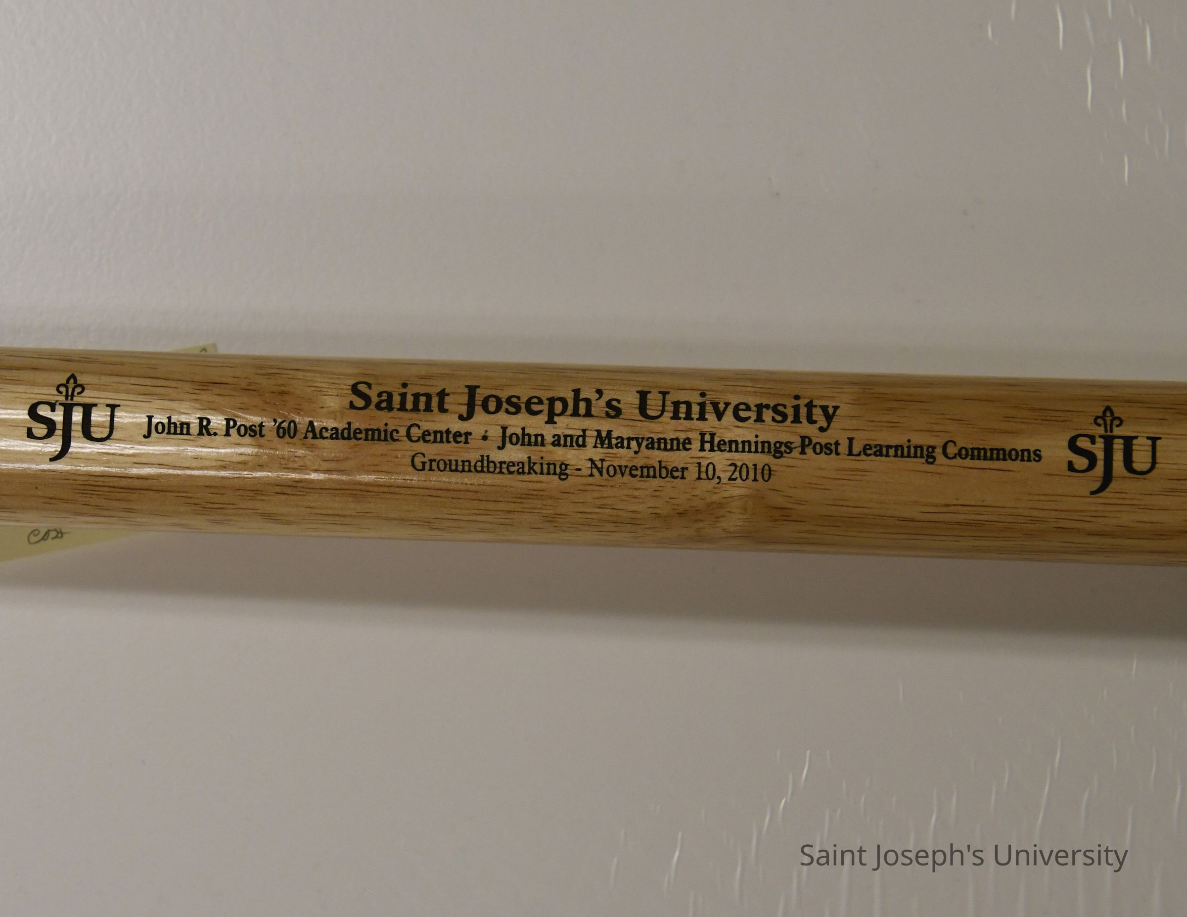 Two identical wood and silver shovels with engraving on wood shaft. Used for the groundbreaking ceremonies of the John R. Post '60 Academic Center and the John and Maryanne Hennings Post Learning Commons on November 10, 2010.Made/Created