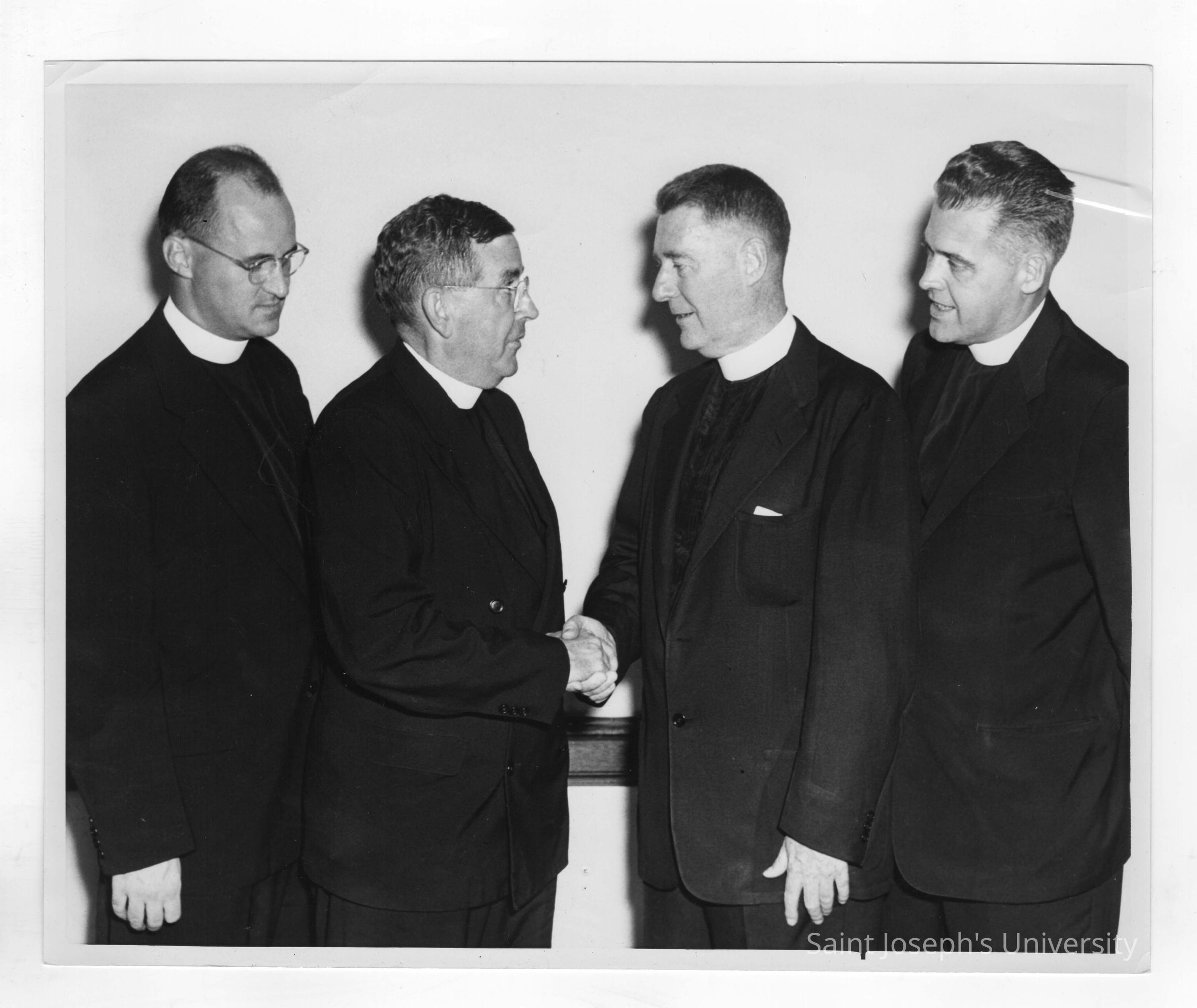 John S. O'Conor, S.J. (Physics) with several other Jesuits possibly during 28th annual convention in 1953 of American Association of Jesuit Scientists.