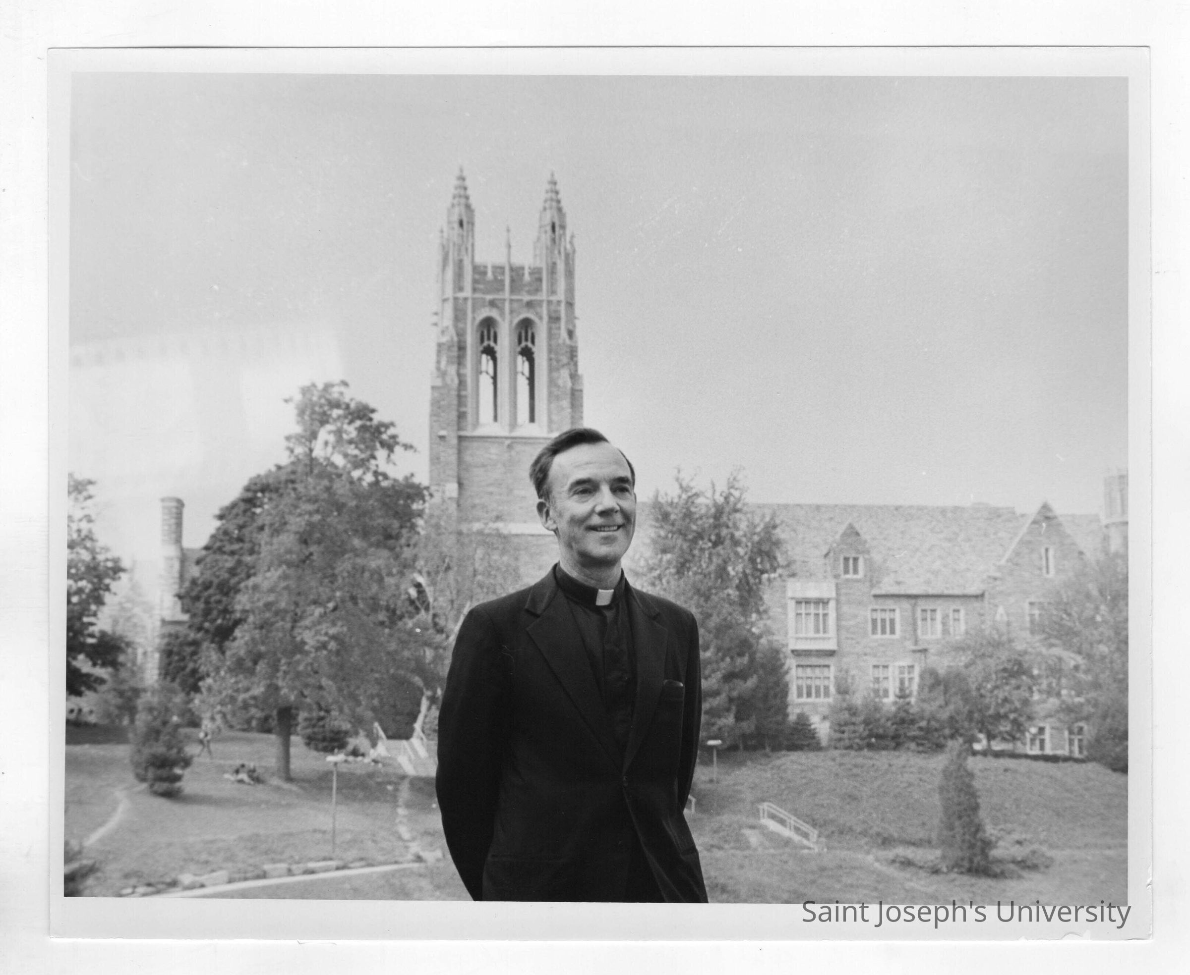 Terrence Toland, S.J., President, SJC, with Barbelin Hall in background.