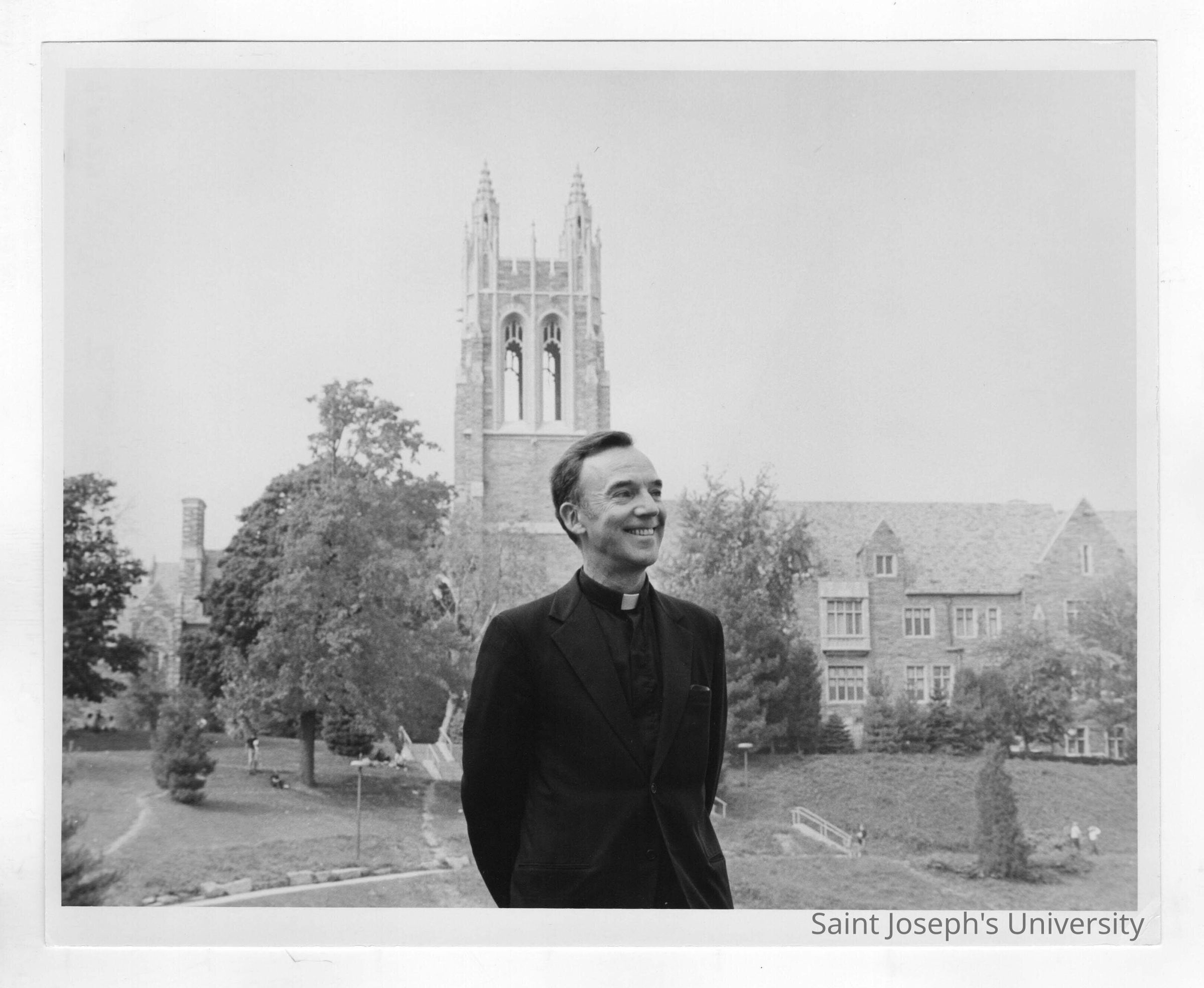 Terrence Toland, S.J., President, SJC, with Barbelin Hall in background.