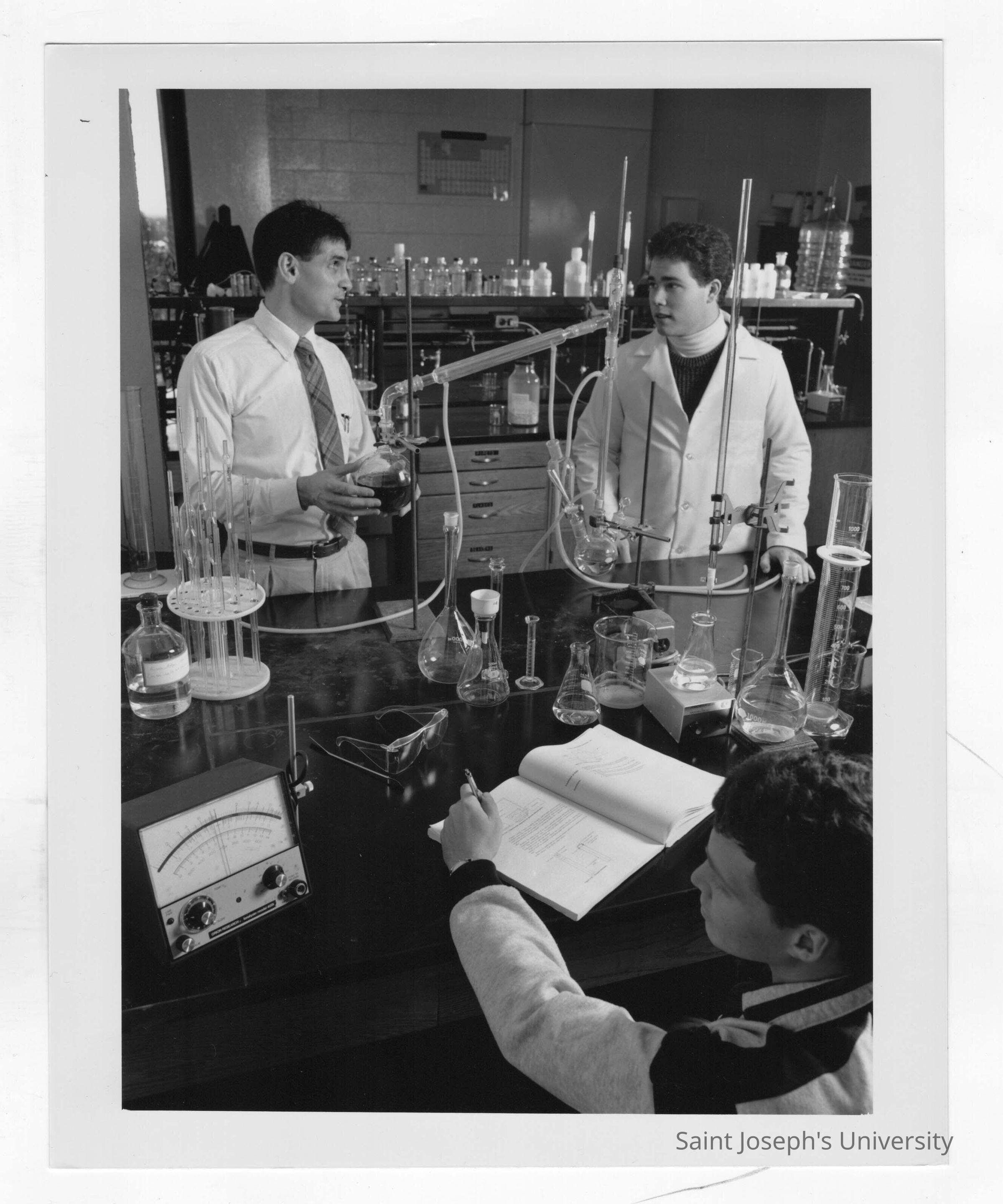 E. Peter Zurbach (Chemistry) in laboratory with two students.