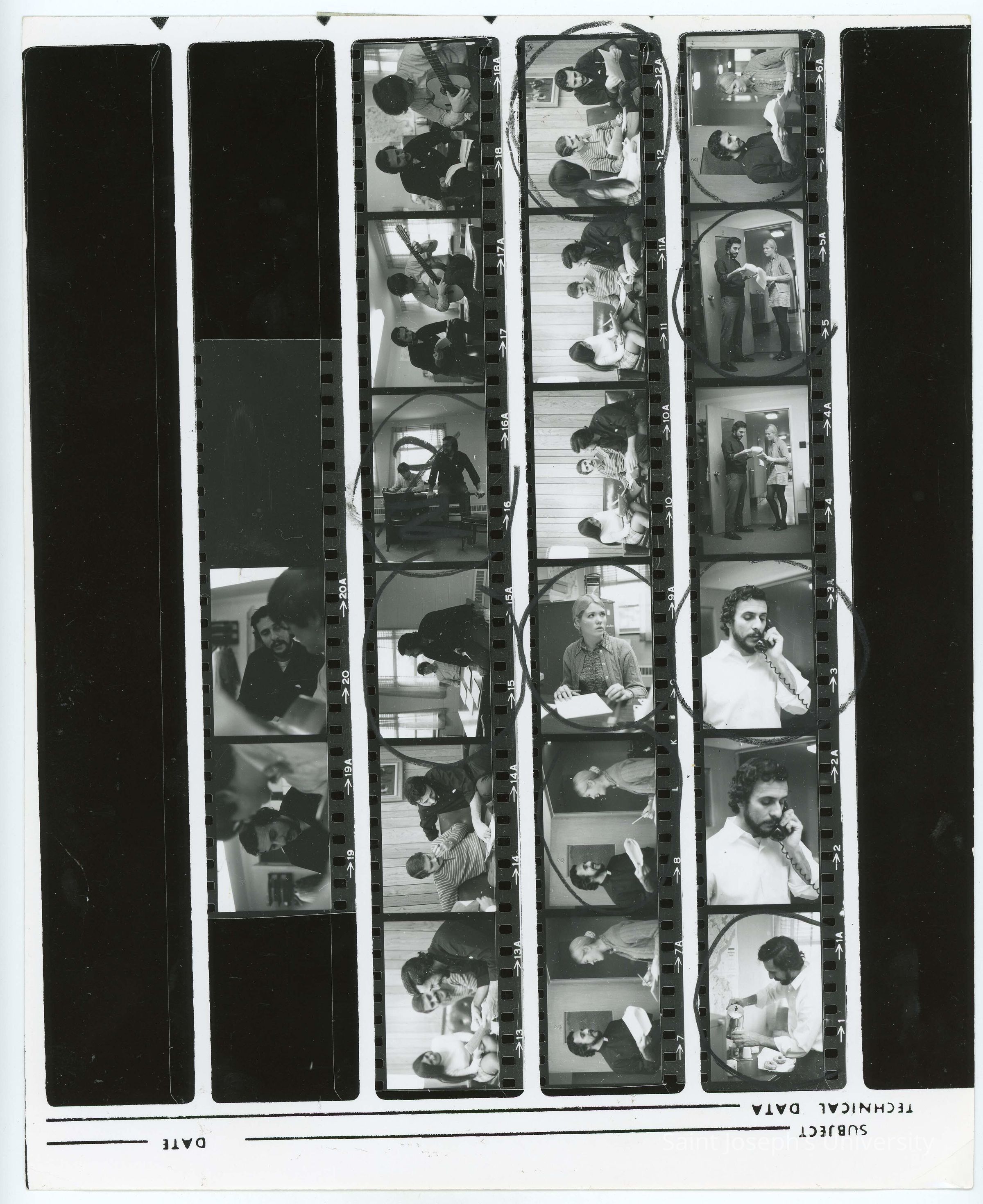 Anthony Cappizzi, S.J.: Director of Campus Ministry. Contact sheet with various views of Fr. Cappizzi with staff.