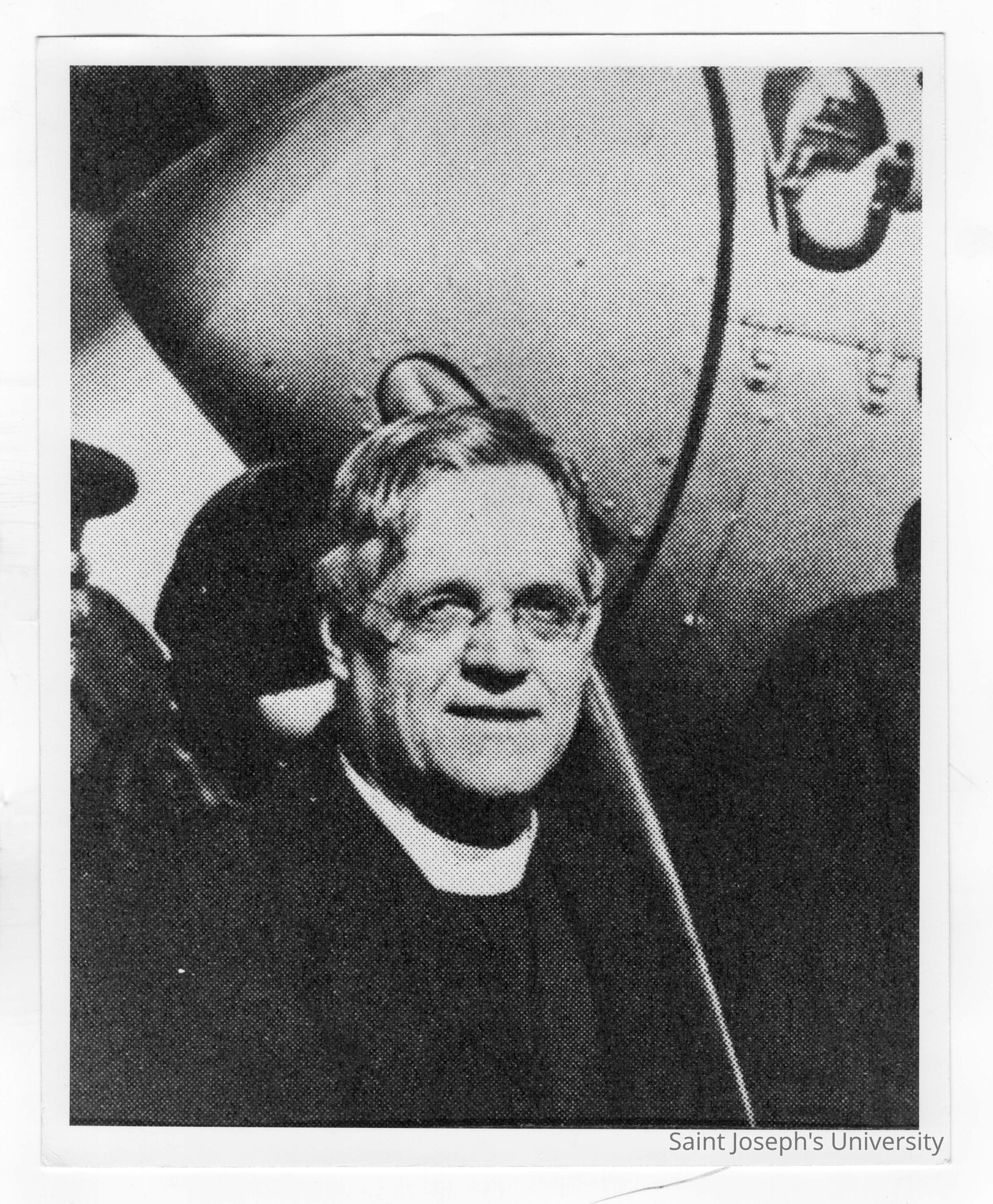 Matthew L. Fortier, S.J.: Faculty, Ethics; Leader in moving SJC from the Gesu to Overbrook from 1922- 1927. This is a copy of a part of a photograph, which in full would show Charles A. Lindbergh arriving in Phila. To receive Honorary Degree.Entry/Object ID