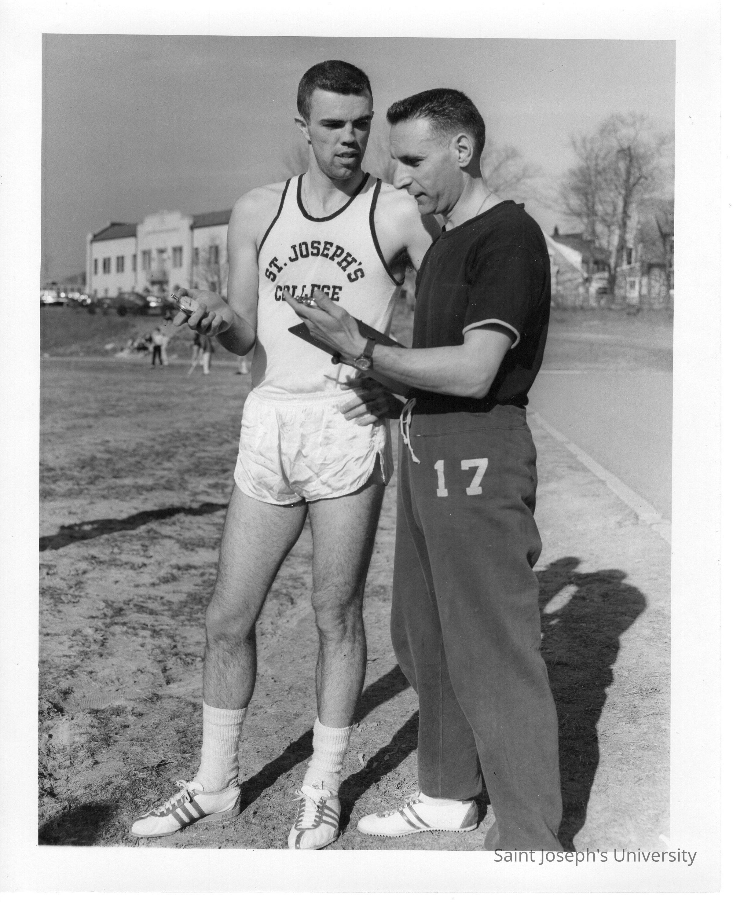 Track team member, James McDonald '62 and coach Lou Nicastro.