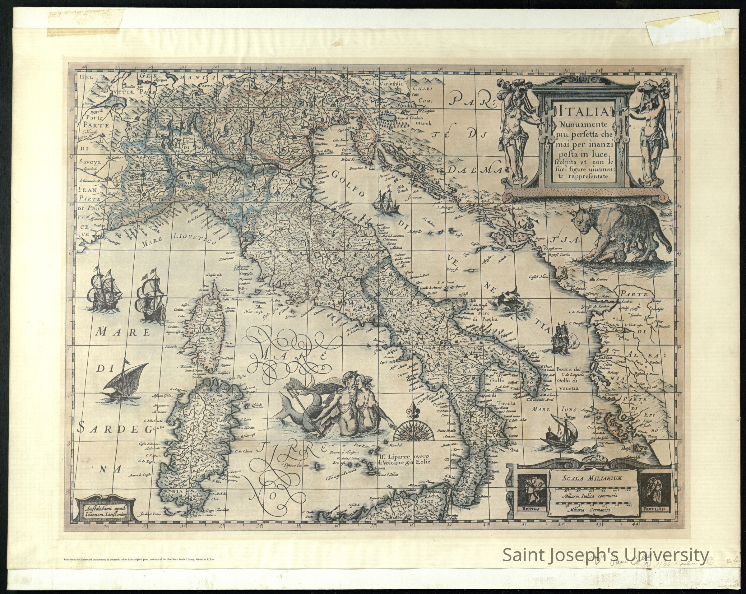 A reproduction of a map of Italy from Hammond Inc. and the New York Library mounted on paper board. Printed in the USA.