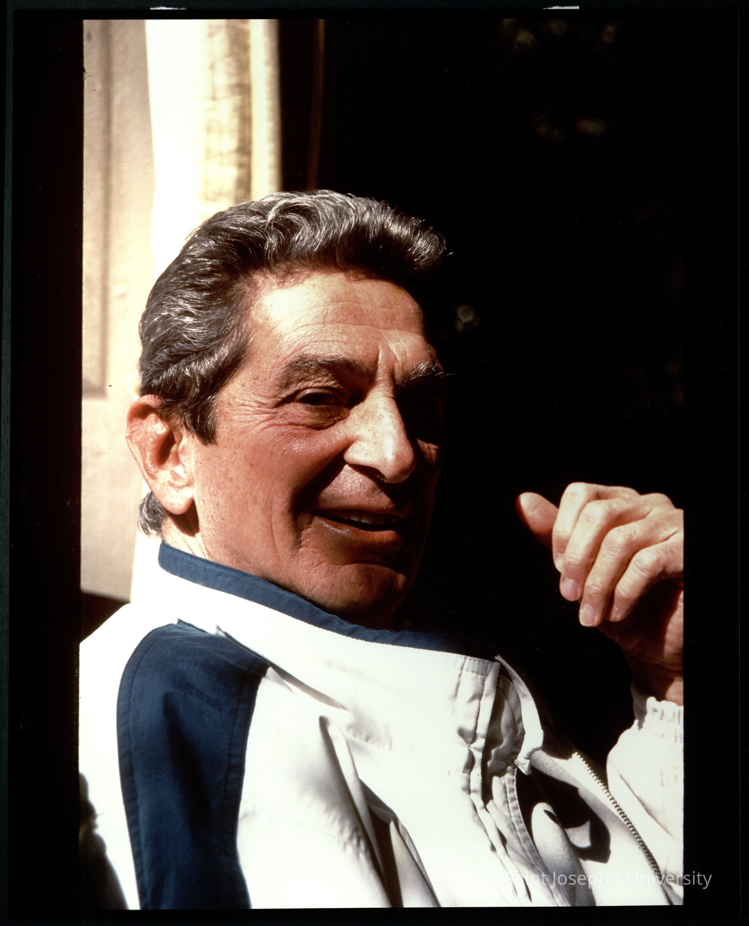 Large color photograph portrait of Thomas M. Foglietta in windbreaker with raised hand. Taken during his time as Ambassador to Italy, circa 1997. Oversized frame 266.