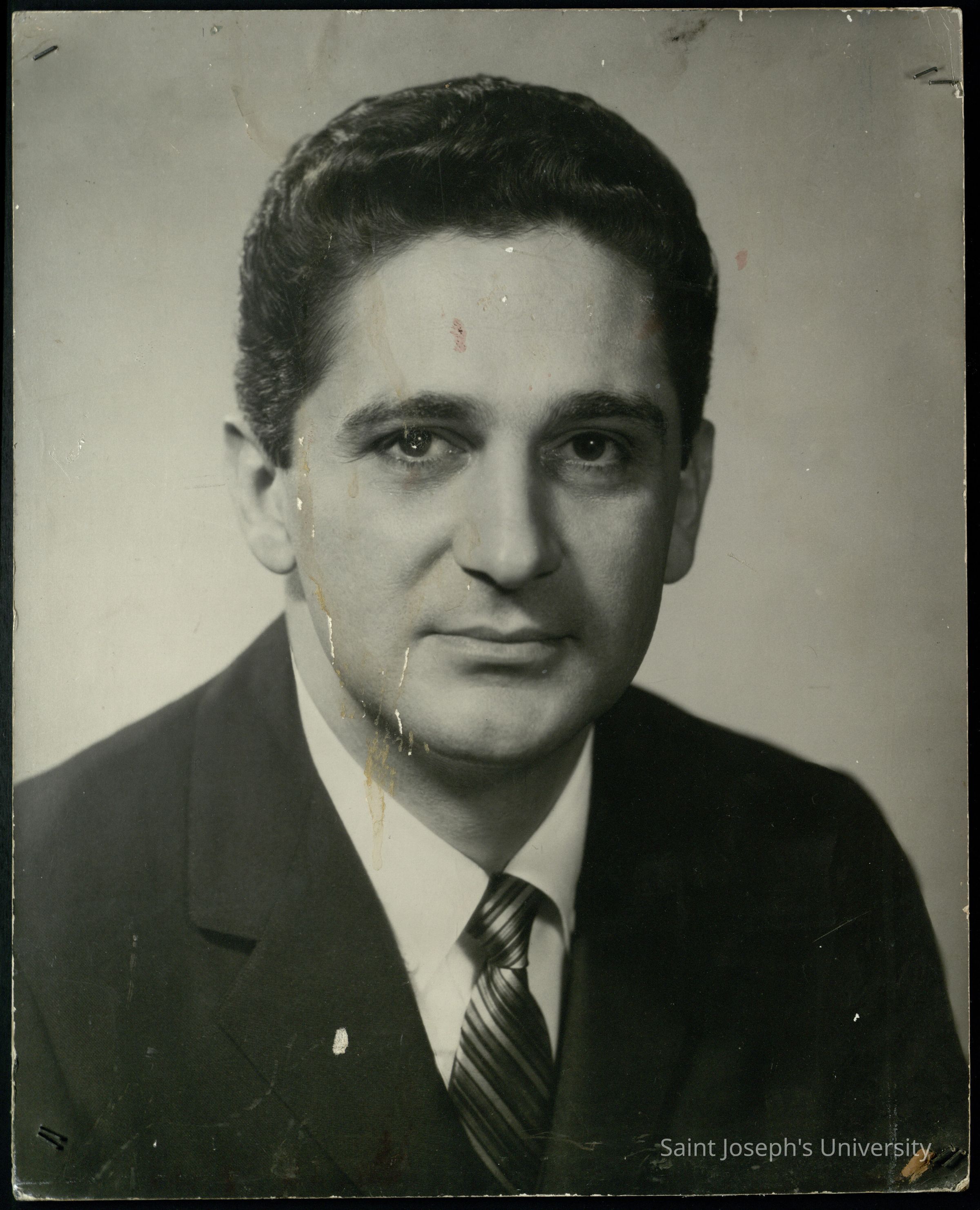 Black and white photograph portrait of Thomas M. Foglietta, circa 1960s (?). Attached to paperboard.