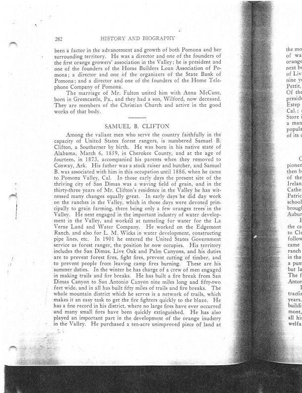 Photocopy from History of Pomona Valley, California with Biographical Sketches of The Leading Men and Women of the Valley Who Have Been Identified With Its Growth and Development from the Early Days to the Present
