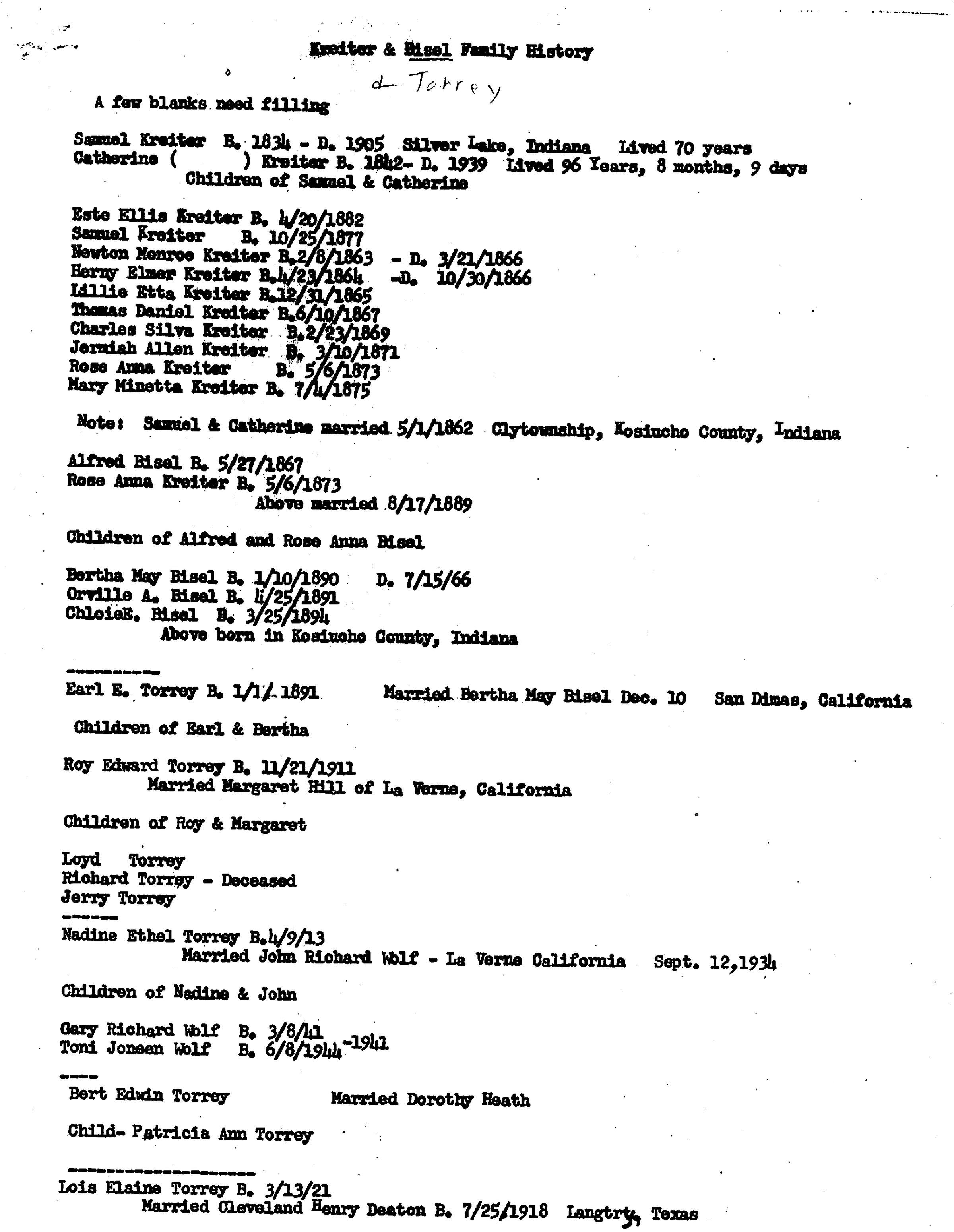 Kreiter and Bisel Family History (See ScanSnap FIle 2019_05_16_13_22_10) Copy of Family History Record (See ScanSnap 2019_05_16_13_25_06)