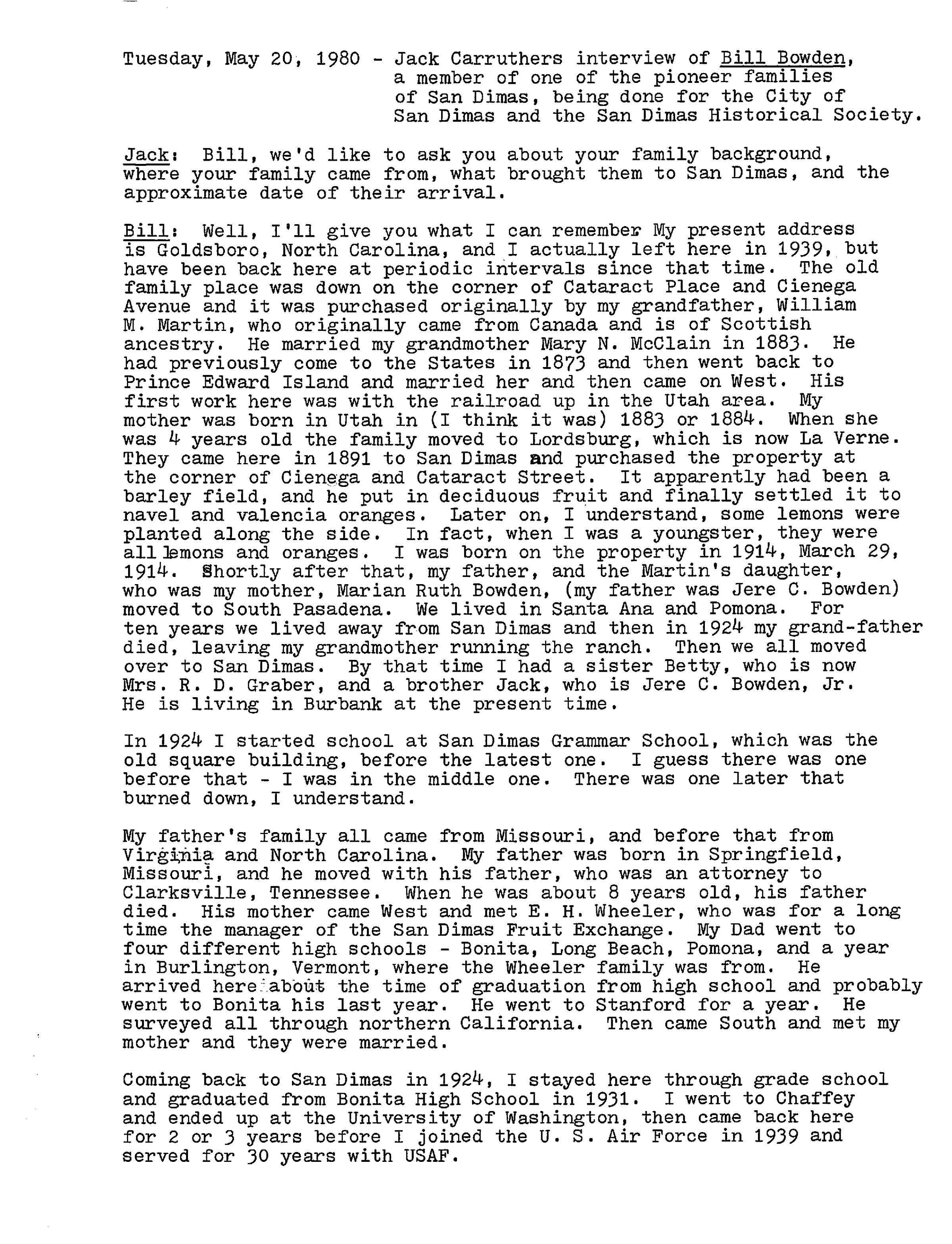 Interview of Bill Bowden, May 20, 1980 (See ScanSnap file 2019_05_30_14_49_25)