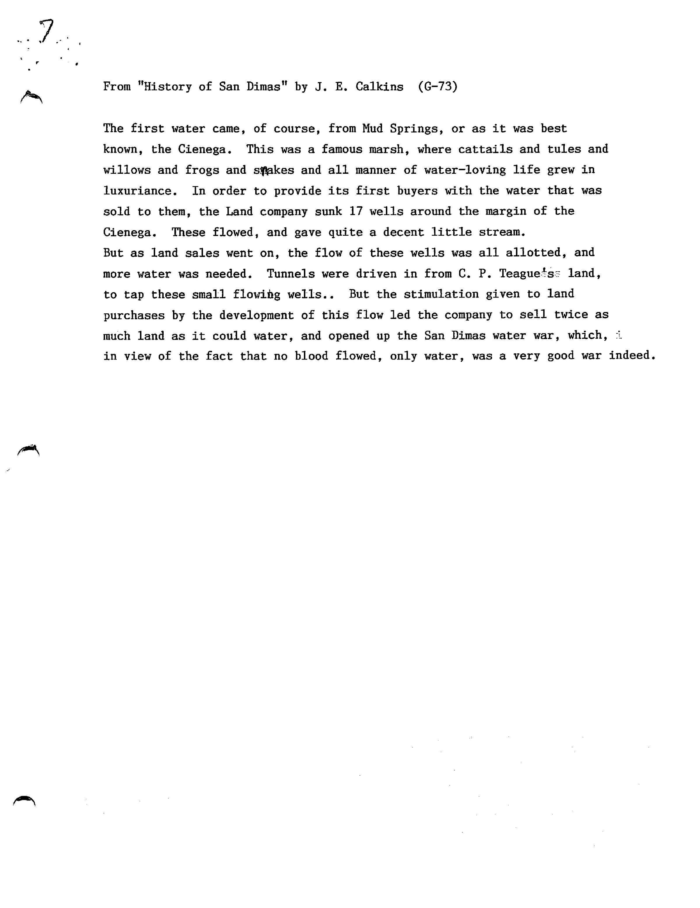 Excerpt from "History of San Dimas" by C. E. Calkins, no date (See ScanSnap file 2019_05_16_13_50_54)