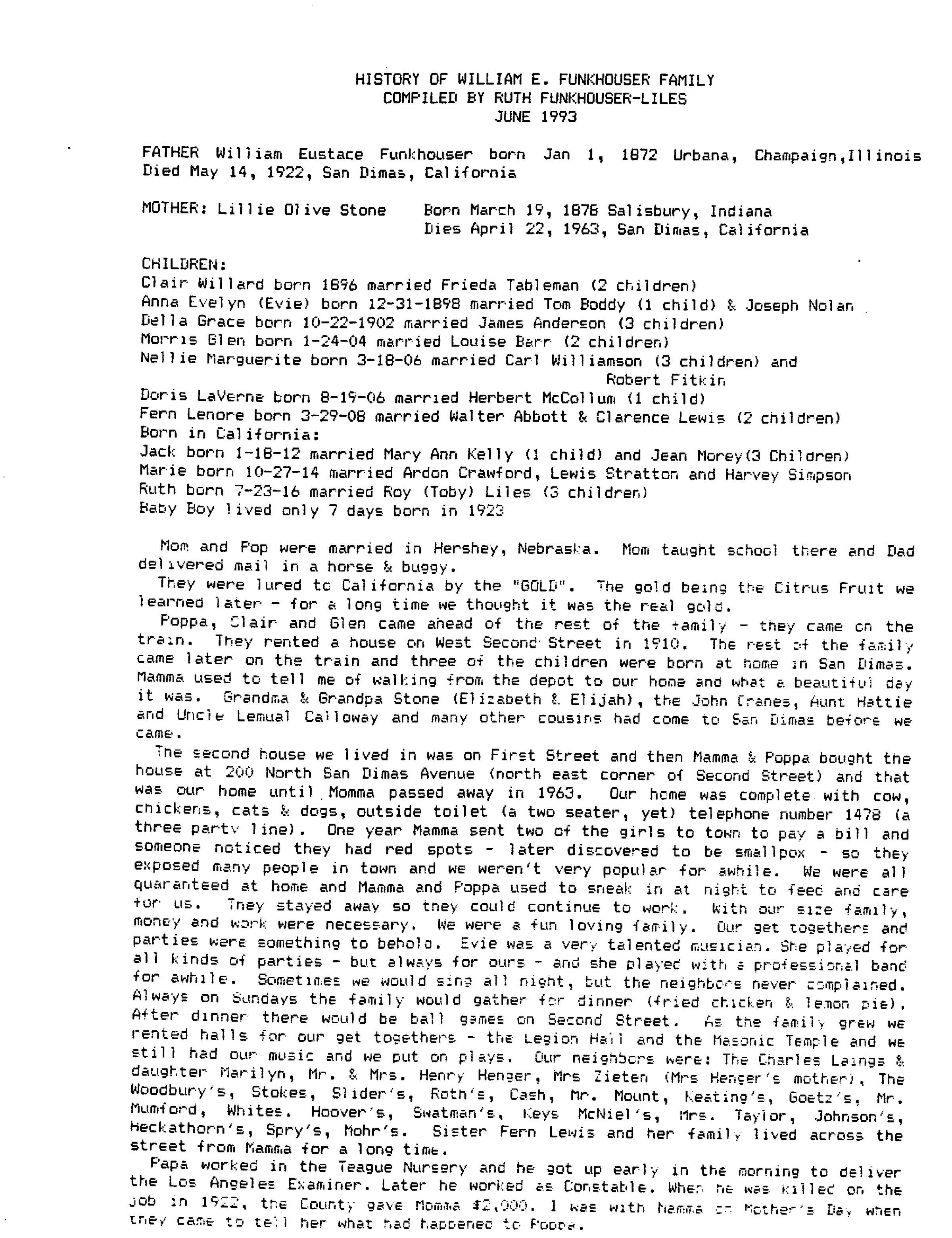 History of William E. Funkhouser Family, June 1993 (See SnapScan file 2019_05_16_14_41_15)