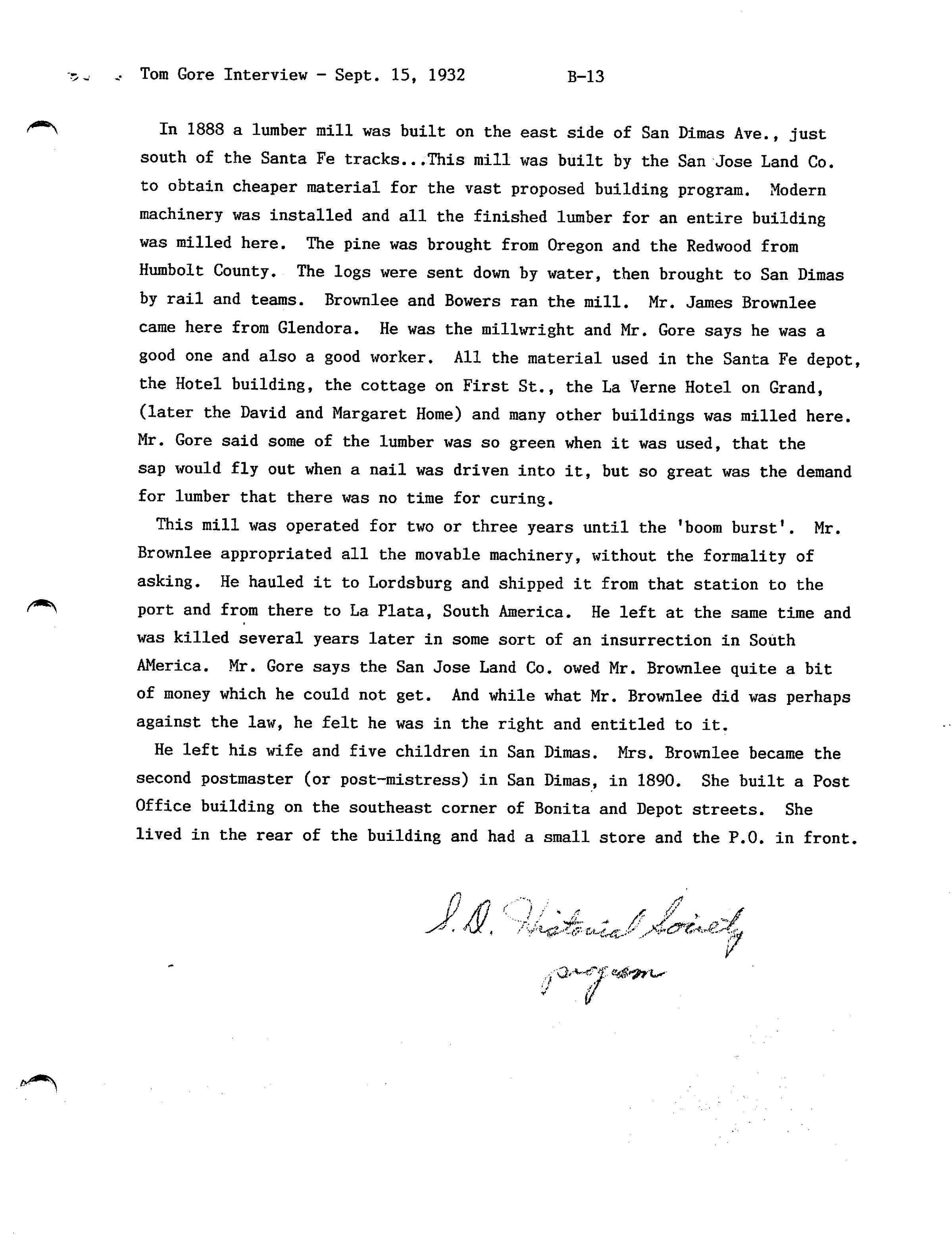 Tom Gore Interview, September 15, 1932 (See ScanSnap file 2019_05_16_15_46_33)