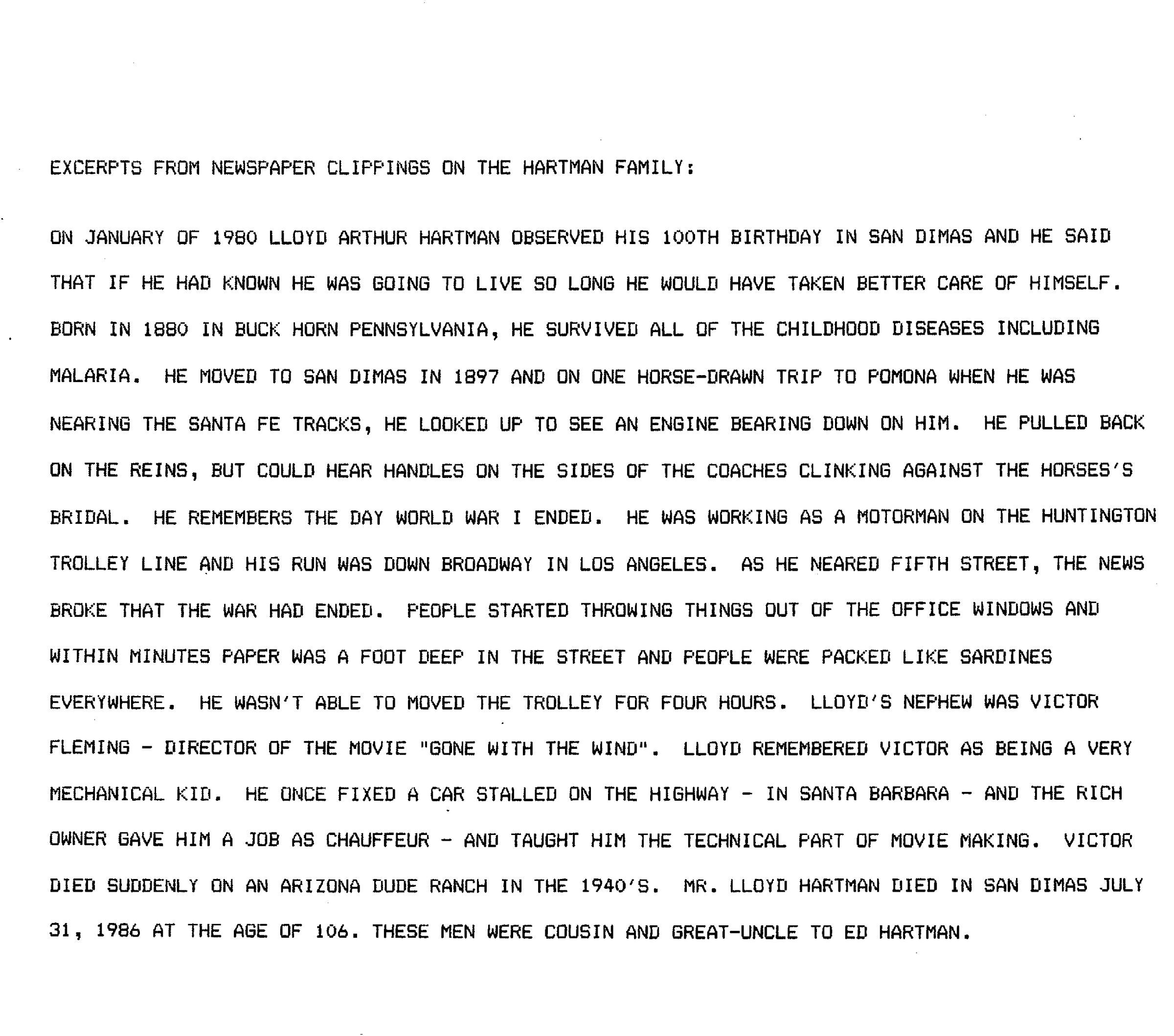 Excerpts from newspaper clippings on the Hartman family, no date (see ScanSnap file 2019_05_21_13_30_24)