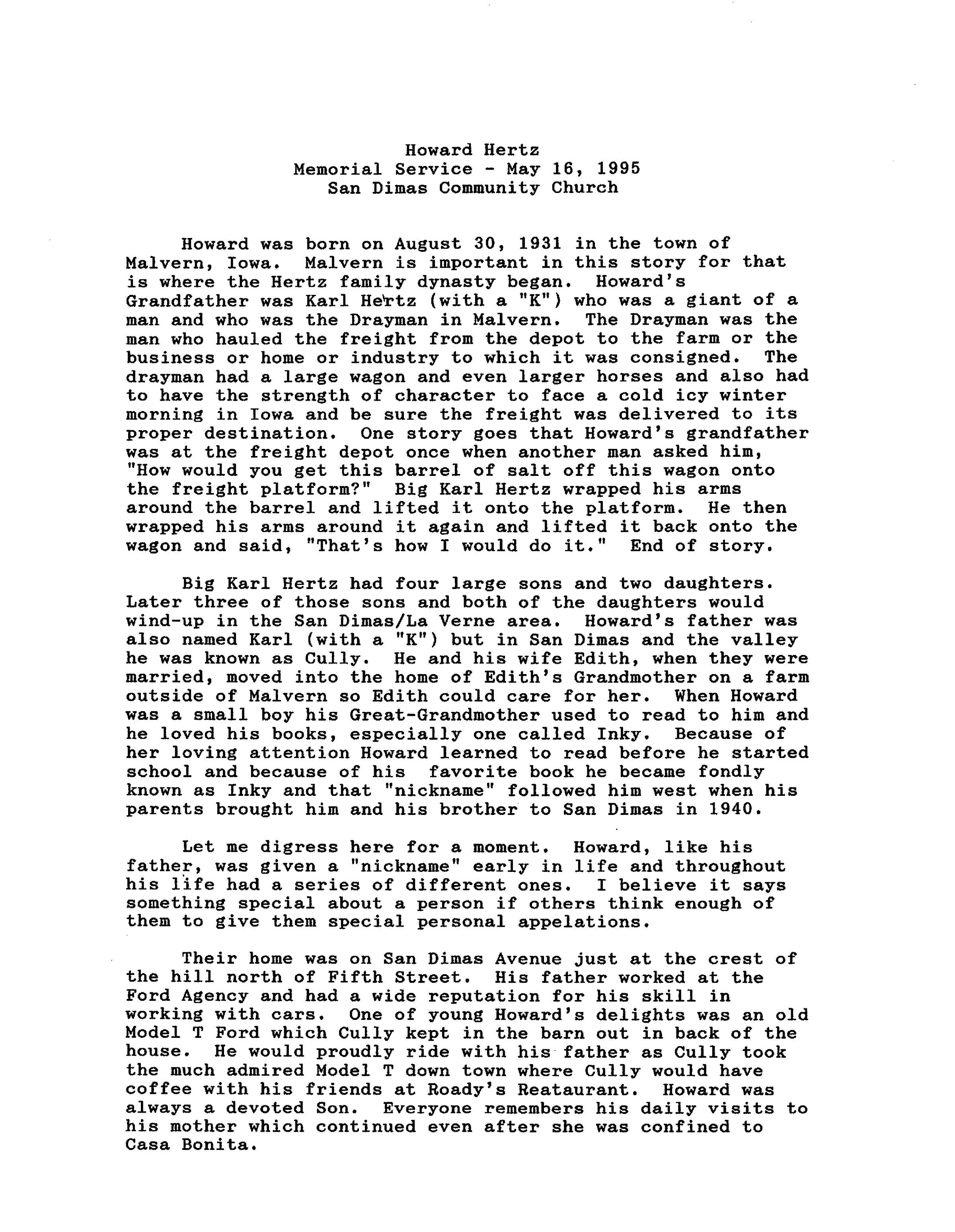 Howard Hertz, Memorial Service, San Dimas Community Church, May 16, 1995 (See ScanSnap file 2019_05_21_13_53_12)
