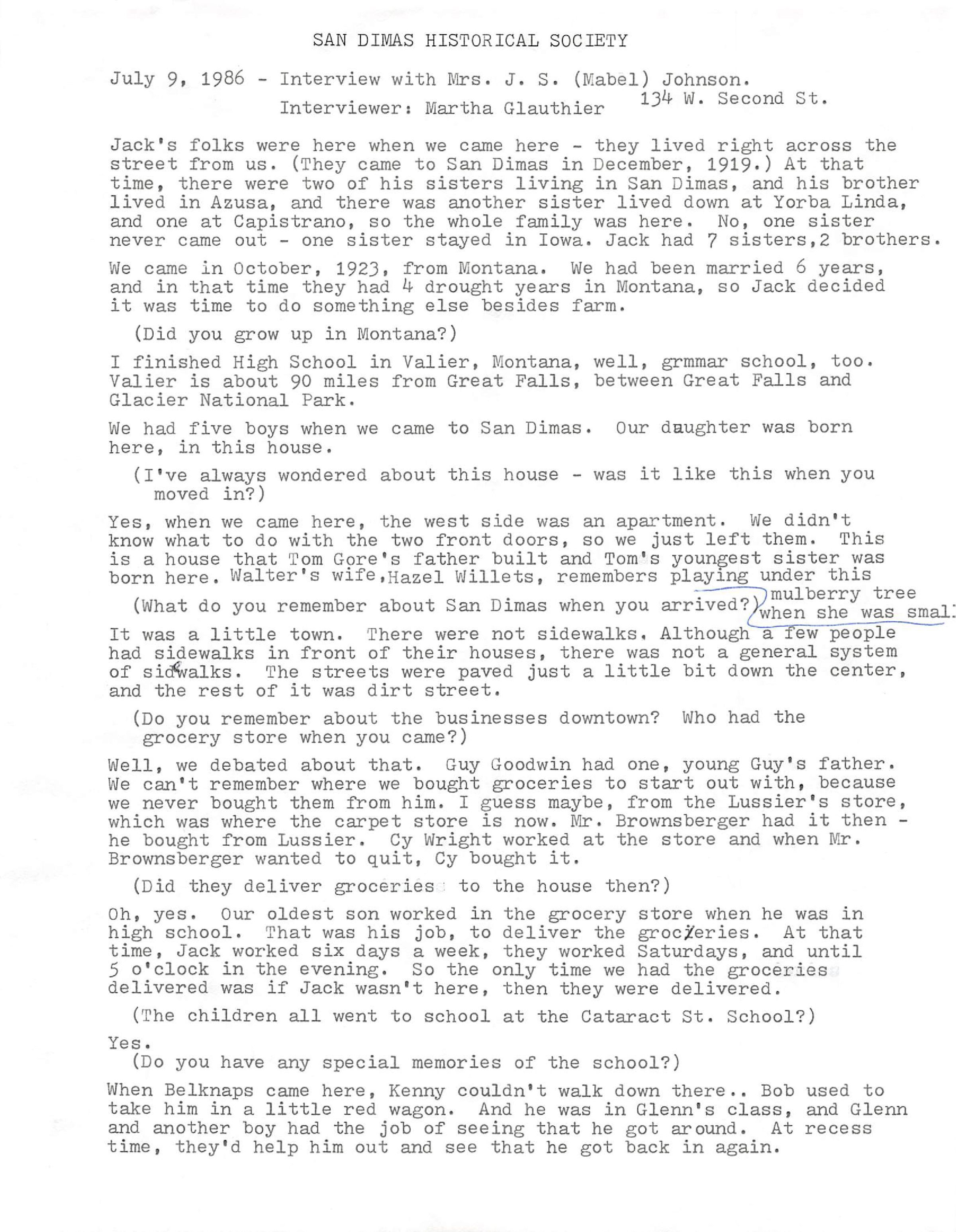 Interview of Mabel Johnson, July 9, 1986 (See ScanSnap file 2019_05_30_13_53_36)