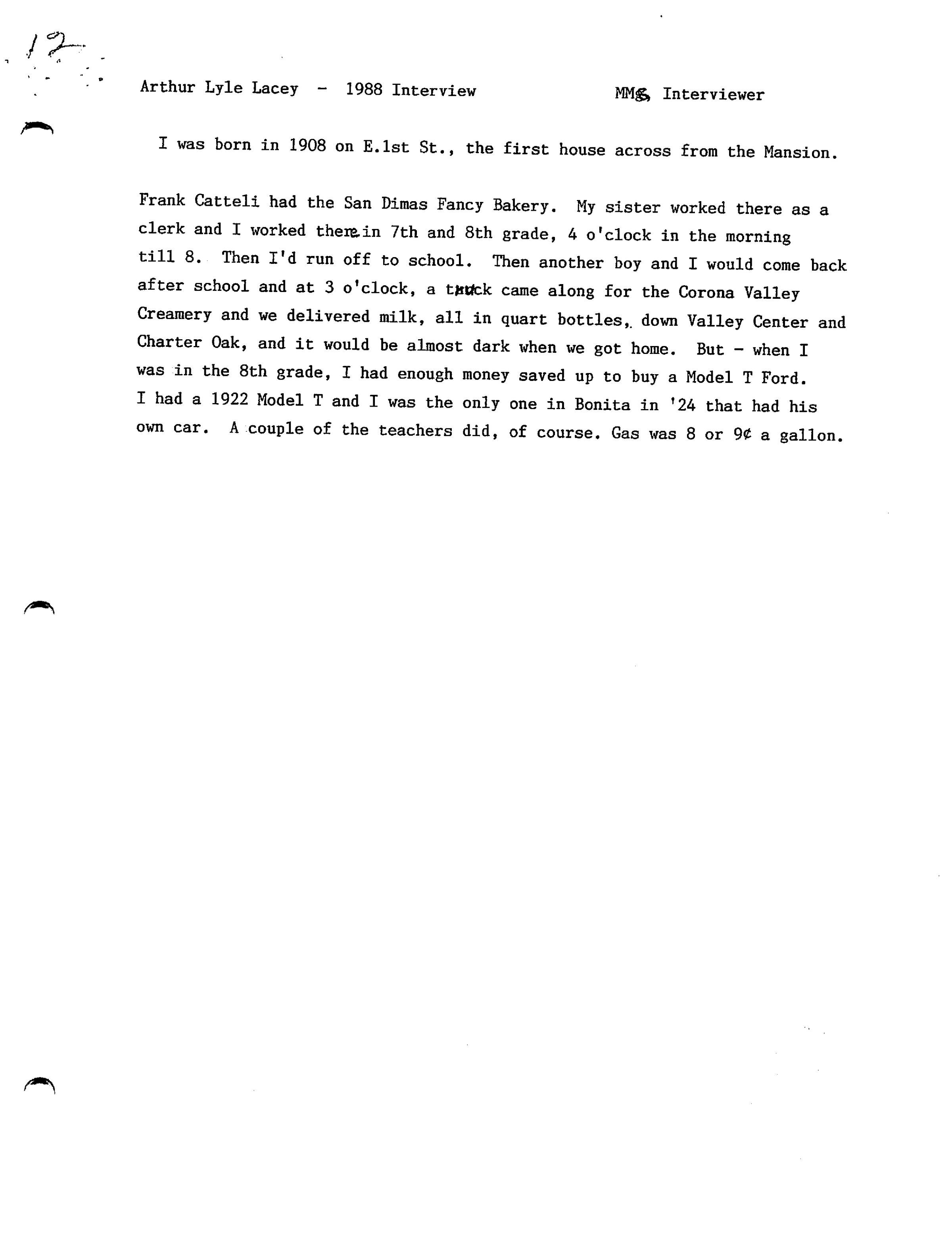 Arthur Lyle Lacey Interview, 1988 (See ScanSnap file 2019_05_21_14_10_41)