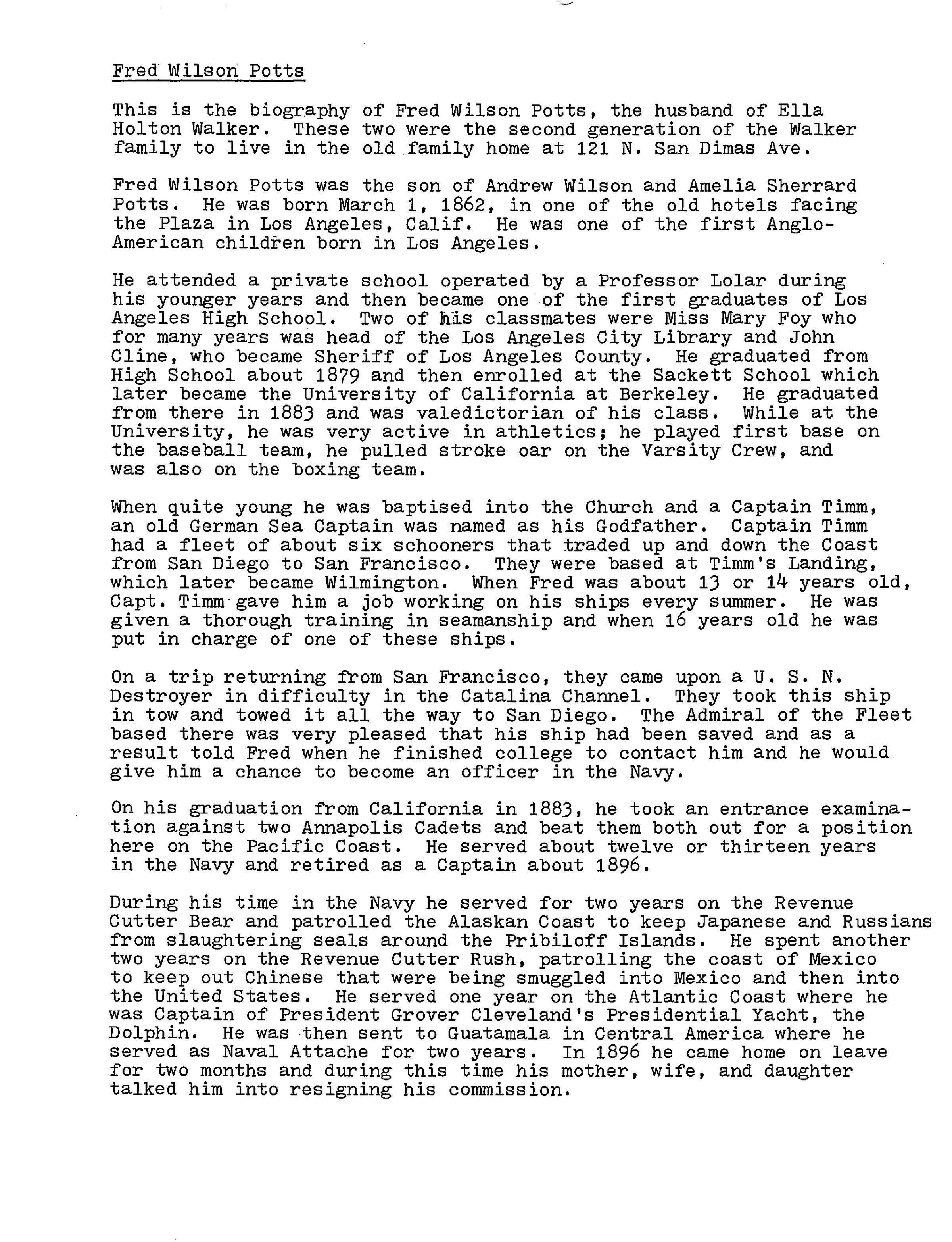 Interview of Fred Wilson Potts, April 21, 1980 (See ScanSnap file 2019_05_30_14_37_58)