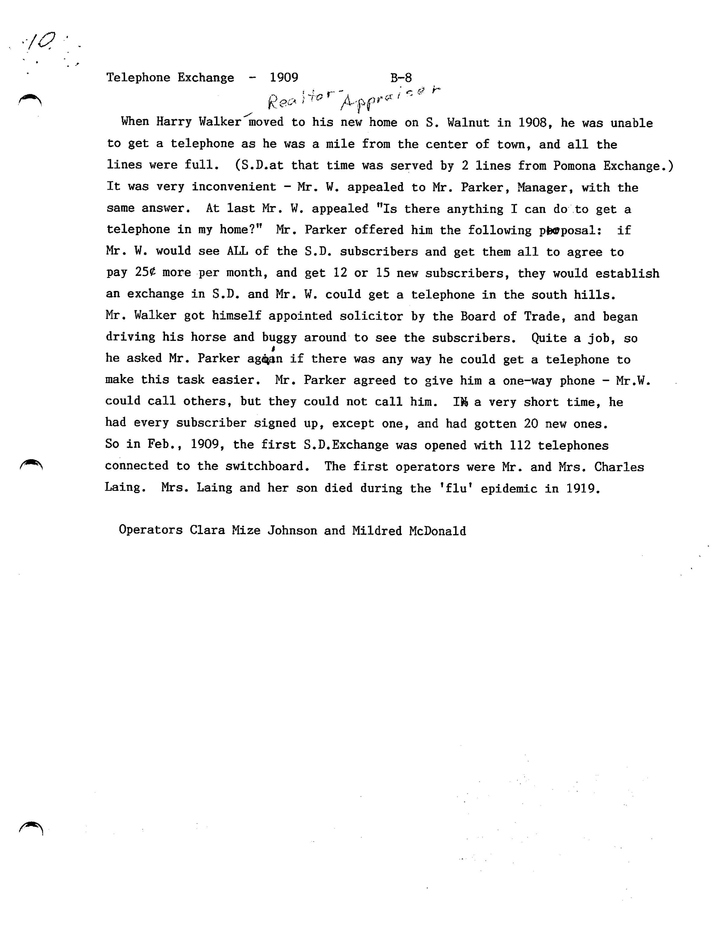 Notes regarding Telephone Exchange, 1909 (See ScanSnap file 2019_05_23_14_55_45)