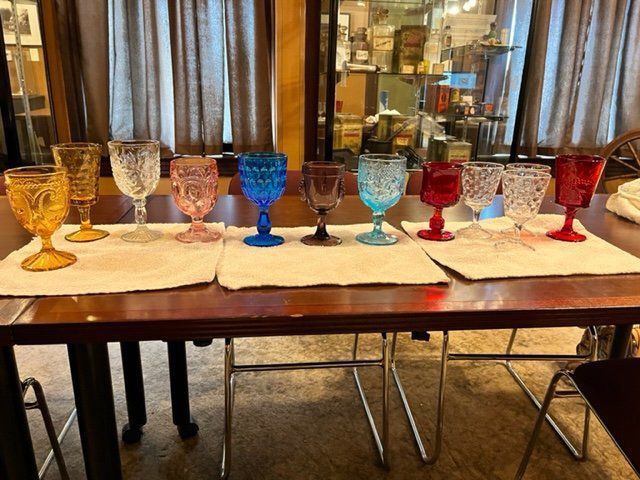 11 goblets of various color and design. Once belonging to various Walker Family members.