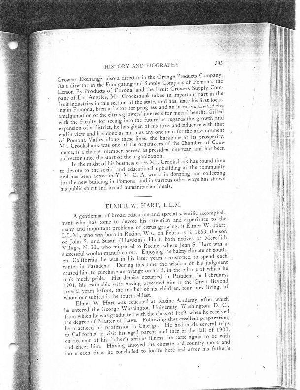 Photocopy from History of Pomona Valley, California with Biographical Sketches of The Leading Men and Women of the Valley Who Have Been Identified With Its Growth and Development from the Early Days to the Present