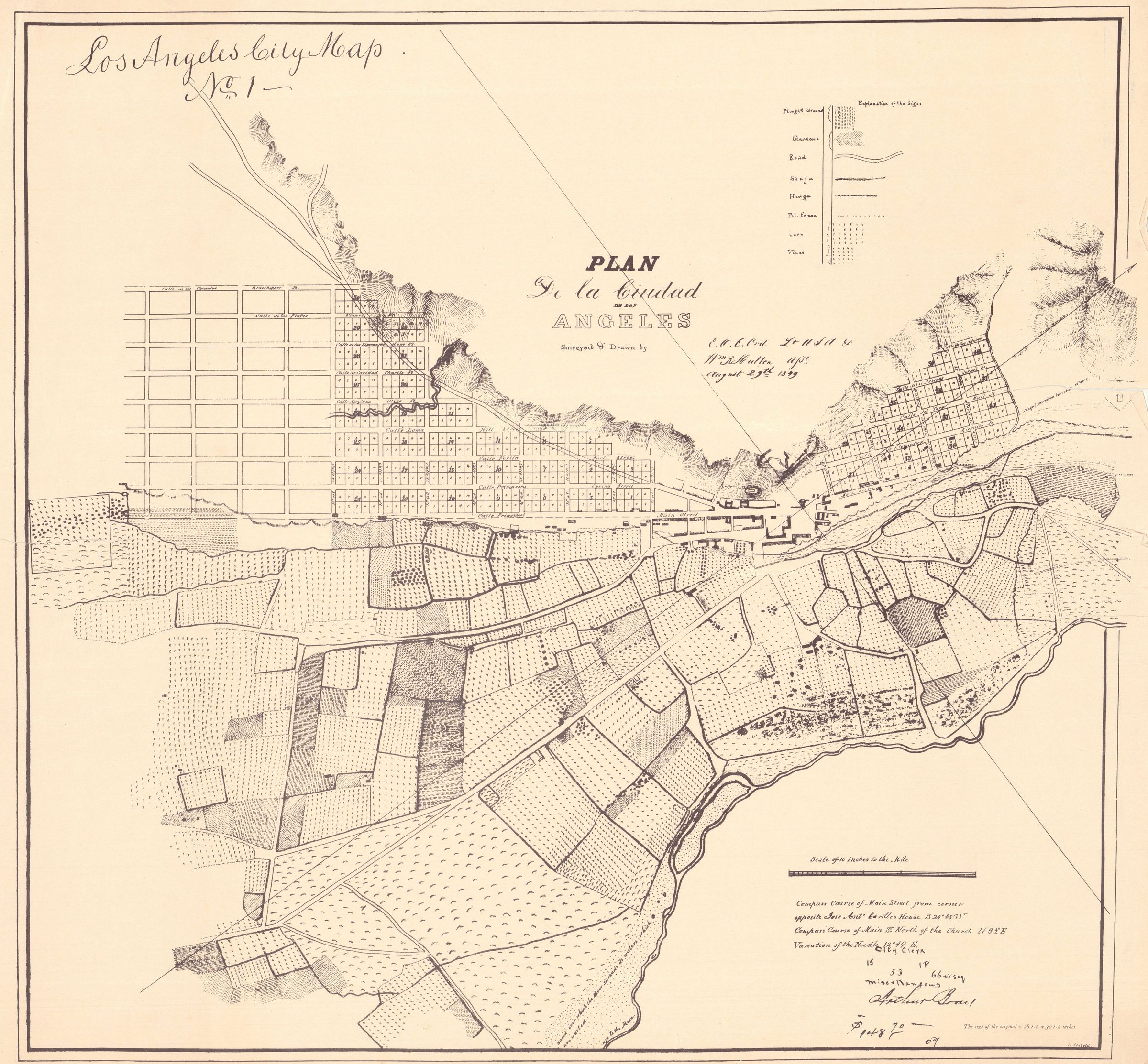Copy of "Los Angeles City Map No 1", by a Lt . R O C Ord, 1849.