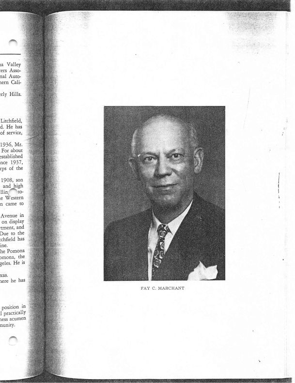 Photocopy of Pomona Valley Community Book with biographical sketch of Marchant, Fay C. *Digital only - no hardcopy*