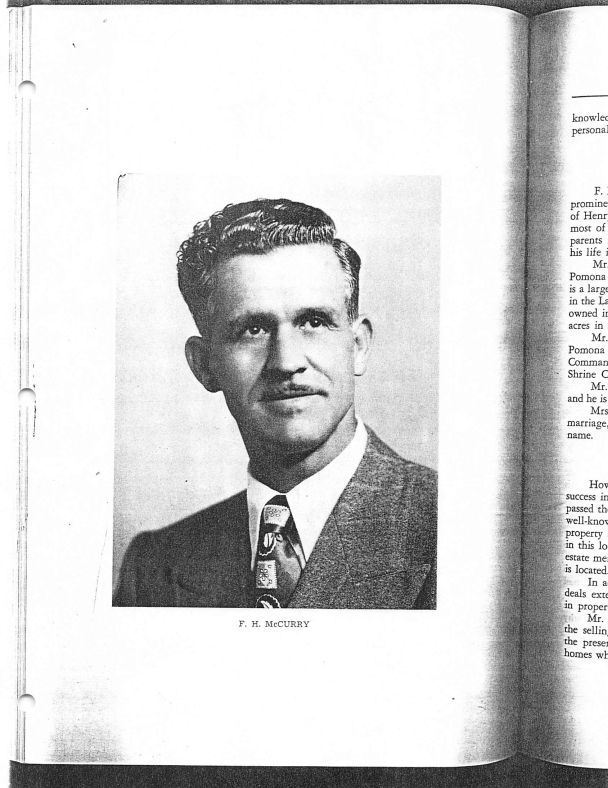 Photocopy of Pomona Valley Community Book with biographical sketch of McCurry, F. H. *Digital only - no hardcopy*