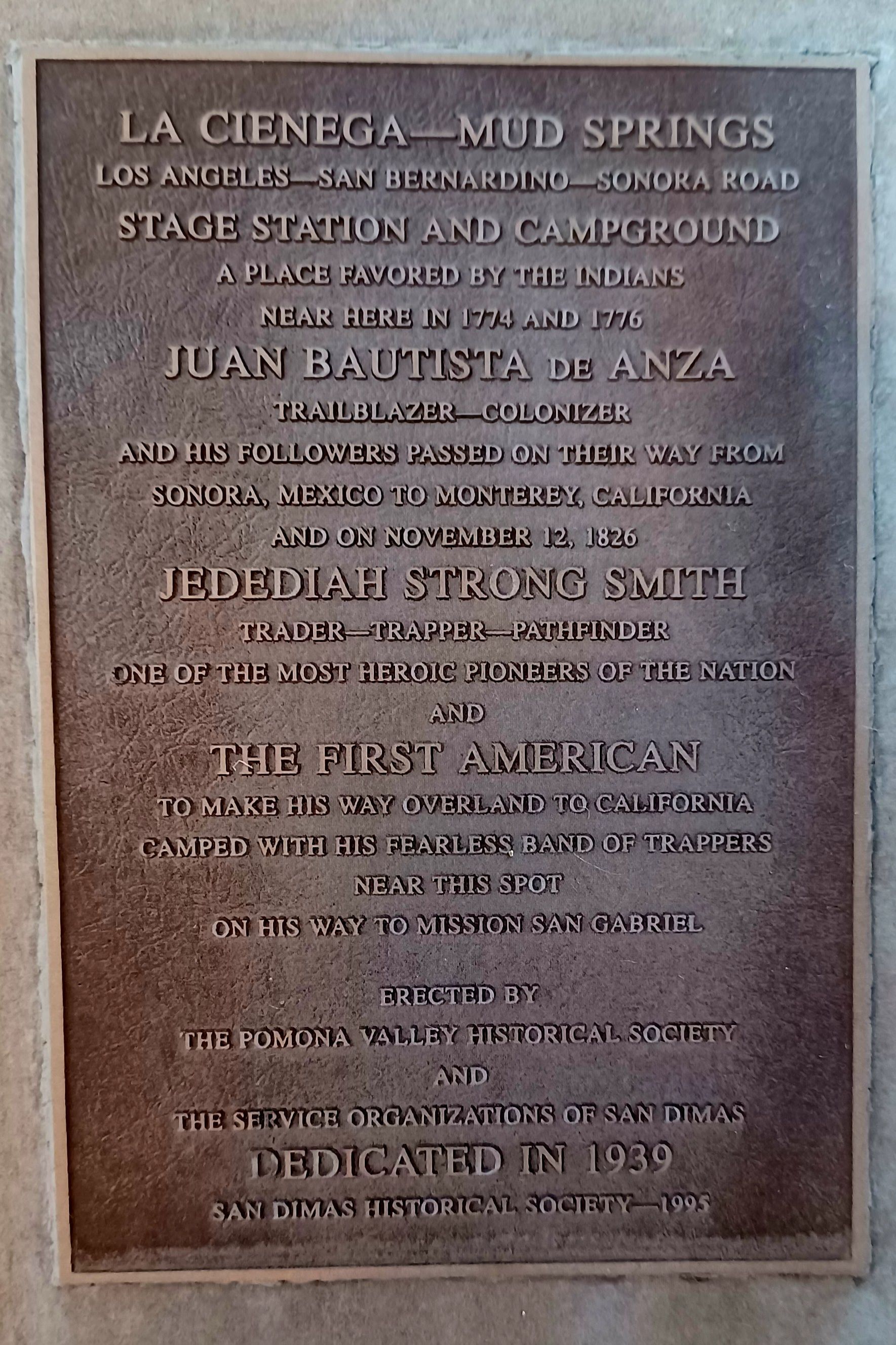 La Cienega - Mud Springs - Inscription of the original Mud Springs Marker, no date