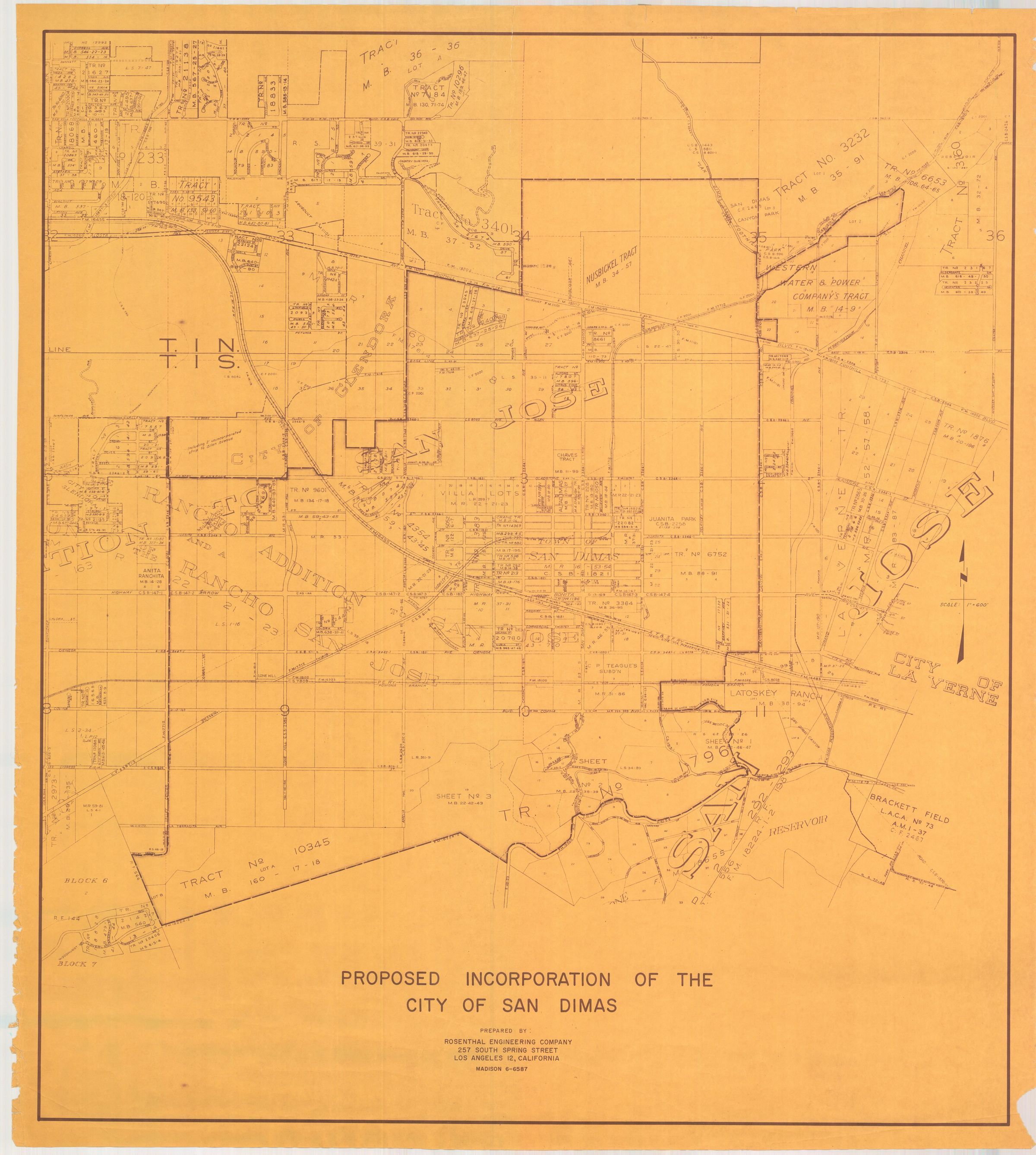 Early (Not 1960) Proposed Incorporation of City of San Dimas - Does Not Include Via Verde (2 copies - one hanging in Room #227)