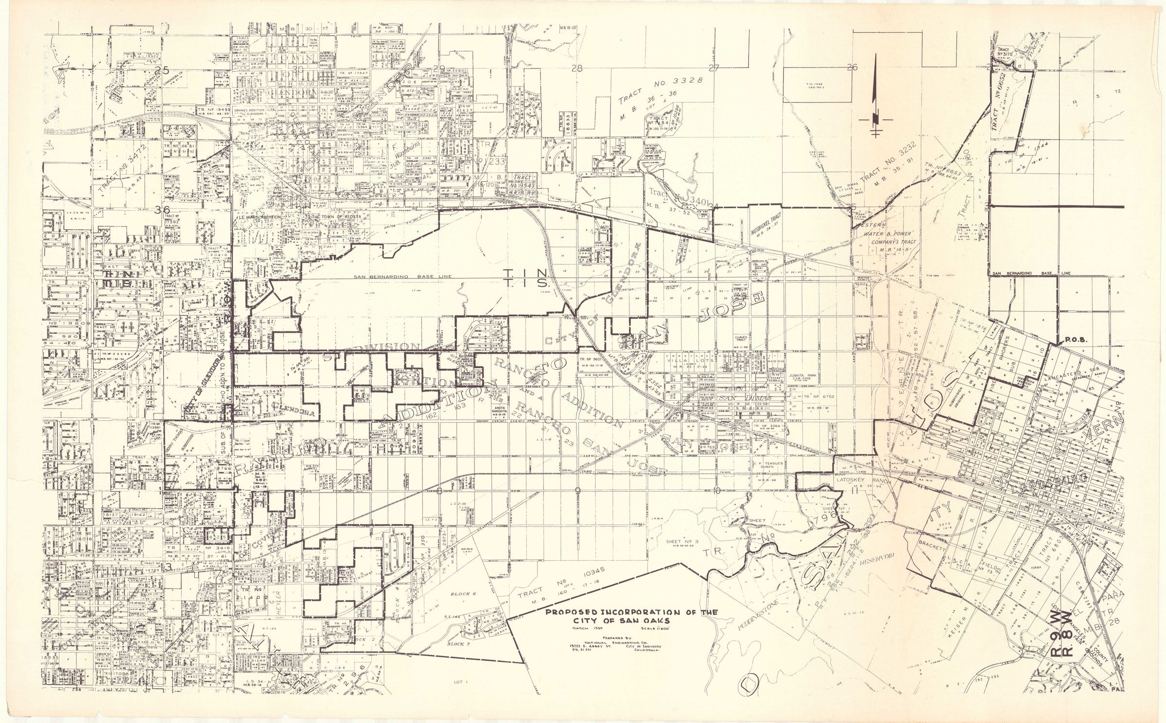 Map of Proposed Incorporation of the City of San Oaks. Prepared by National Engineering Company dated March 1959