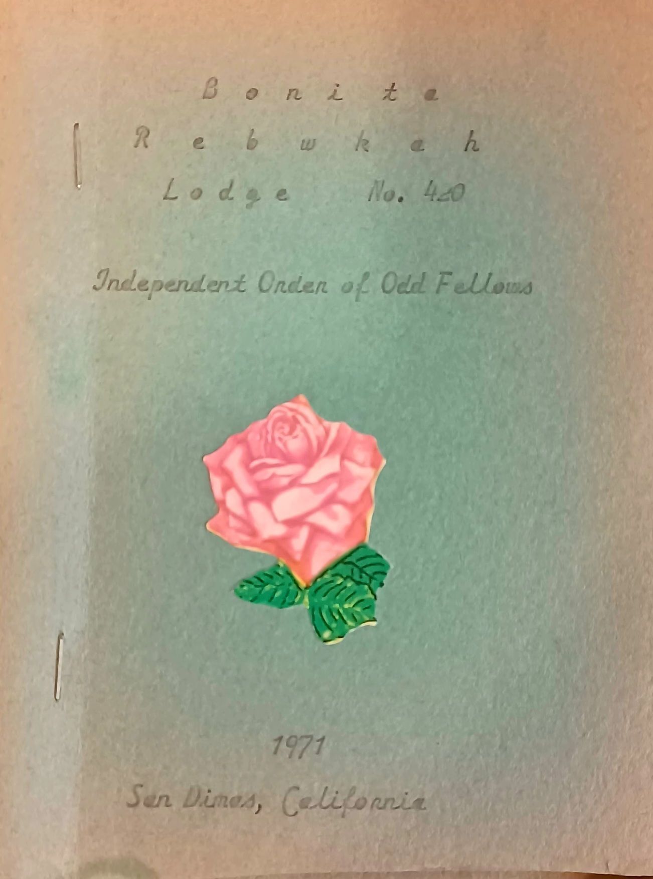 Directory and calendar - "Bonita Rebekah Lodge, No. 420, Independent Order of Odd Fellows, San Dimas, California" 1971