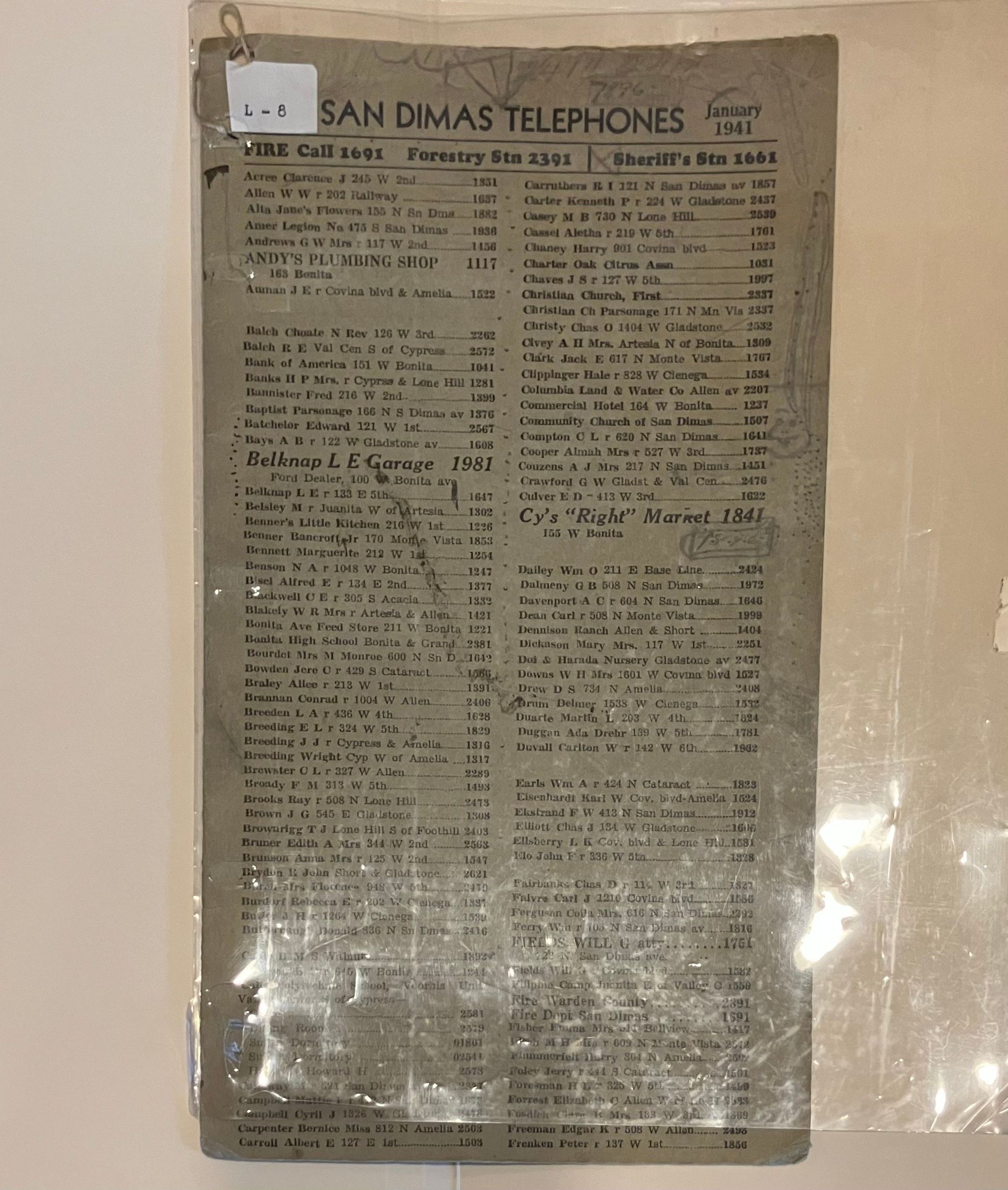San Dimas Directories 1940 -Entry/Object ID