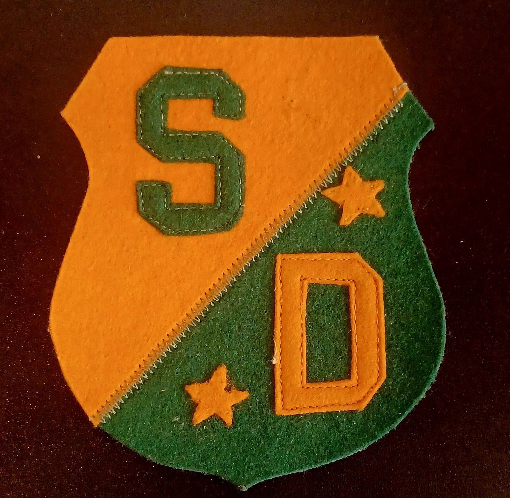 Felt badge/patch - orange and green colors, with letters S & D (in Ladies Fine Handkerchiefs box)