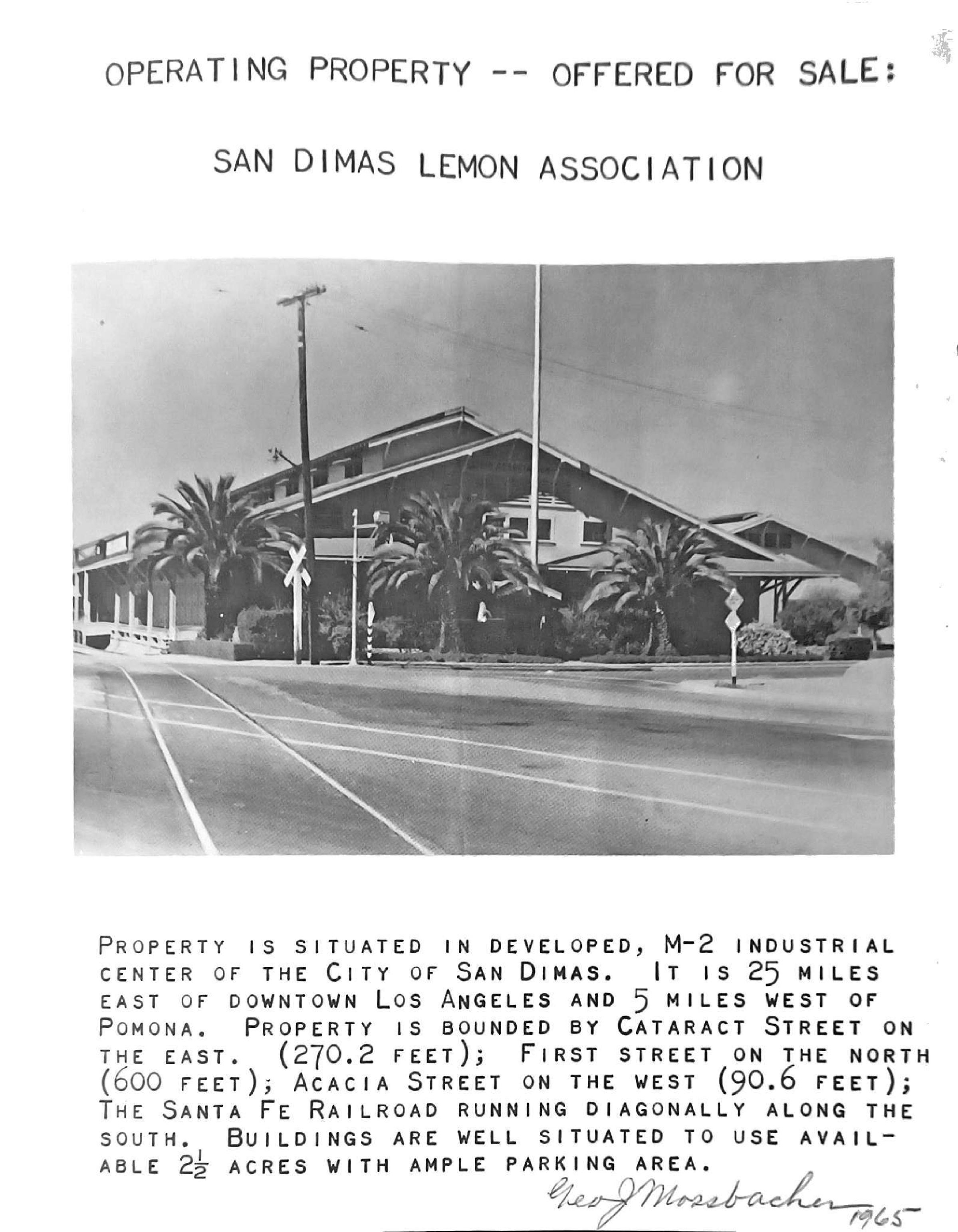 Leaflet - Operating Property -- Offered For Sale: San Dimas Lemon Association, 1965