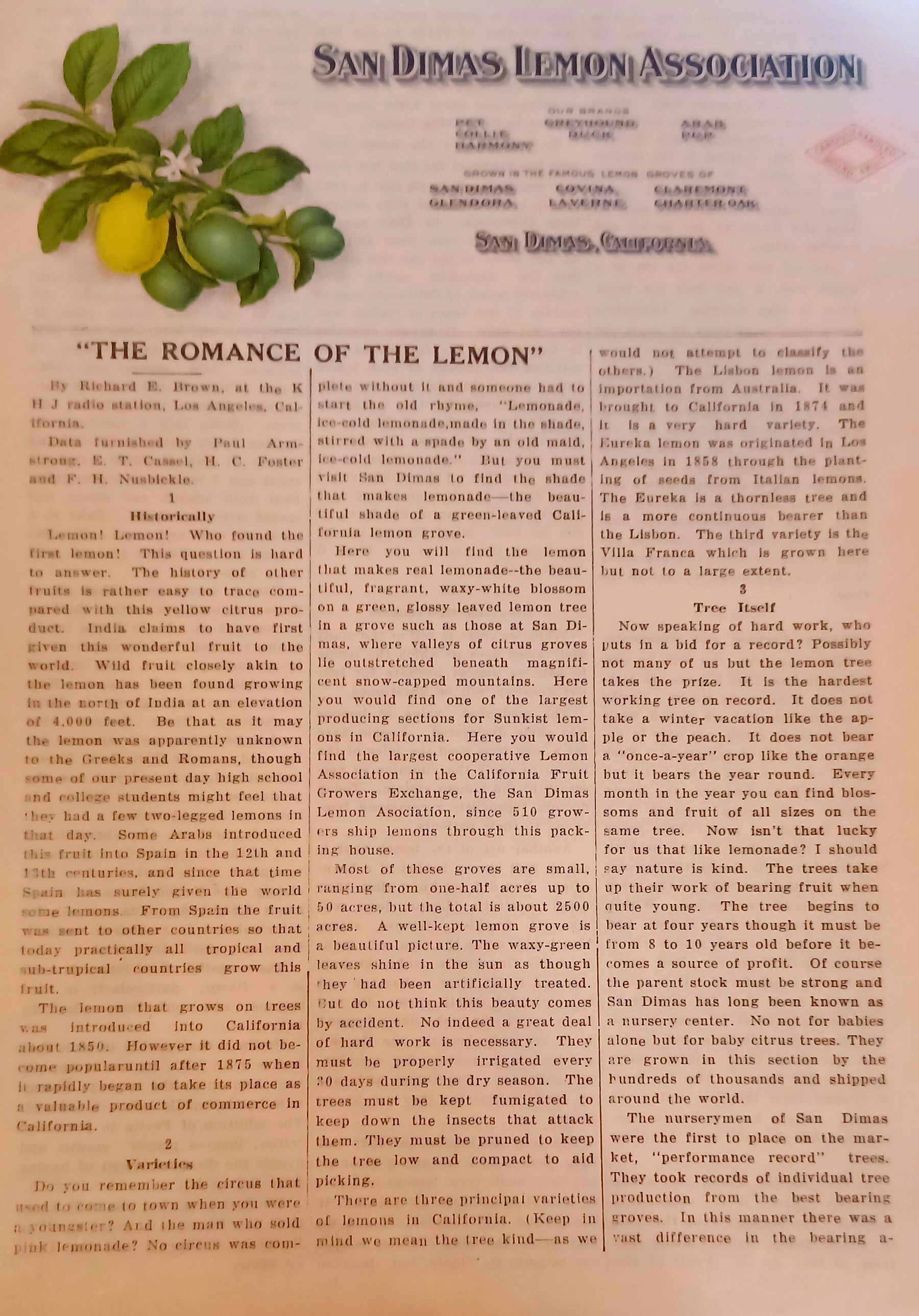 Publication - "The Romance Of The Lemon", by Richard E. Brown, at the KHJ radio station, (7 copies, in plastic sleeve)