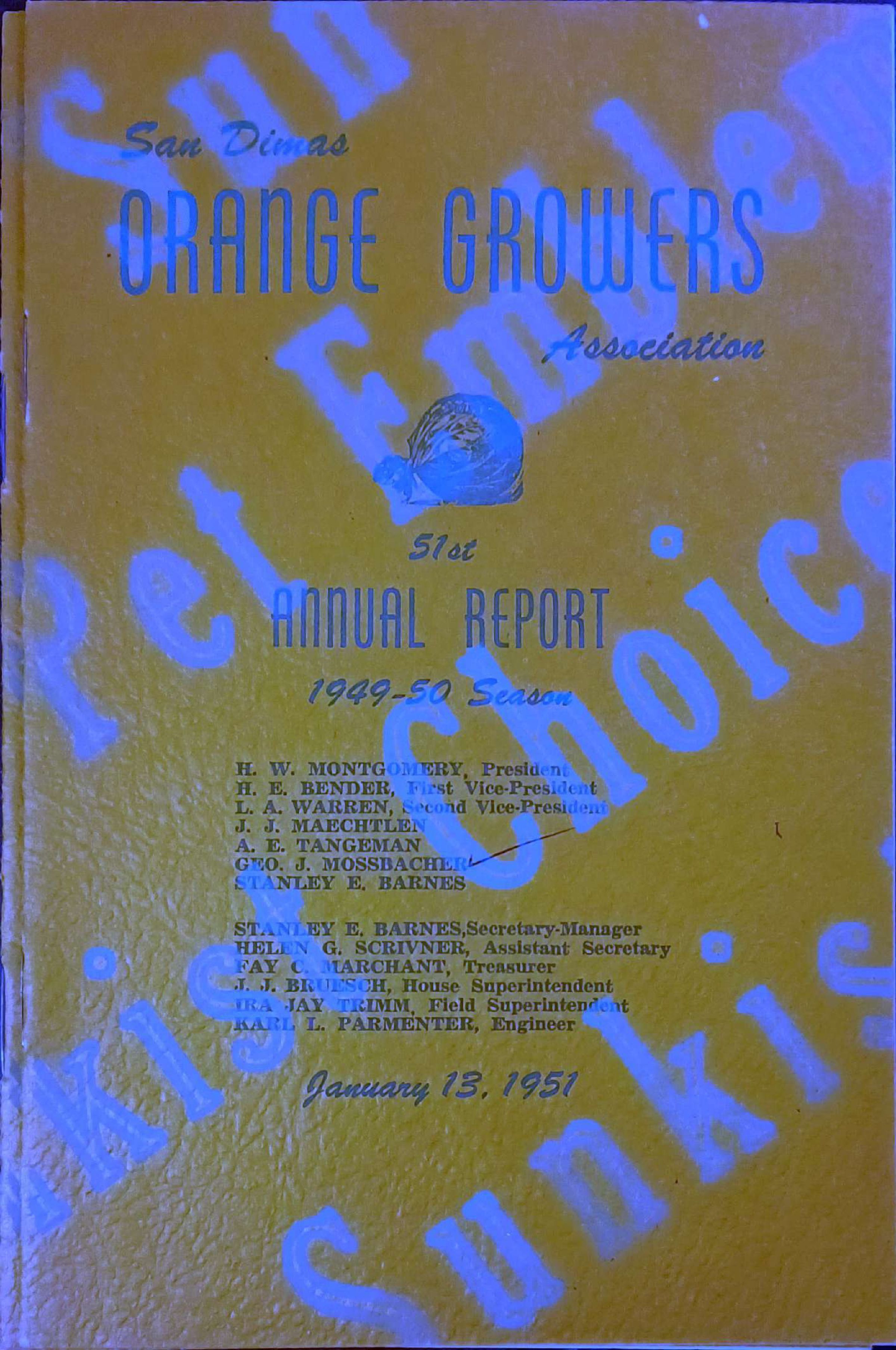 Report - 51st Annual Report, San Dimas Orange Growers Association, 1949-50 Season ( 3 count)
