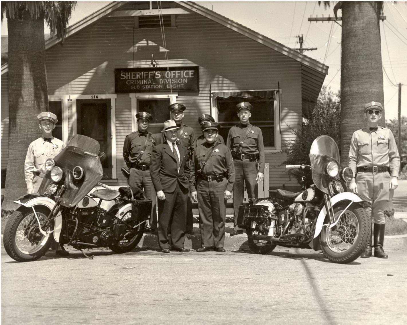 The first San Dimas Sheriff's Station which opened in July 1927. It was located at 116 North San Dimas Avenue. The first captain was Tom Gordon. Station had punching bag inside back door - officers all punched it, coming and going(from Tex Shoemaker).