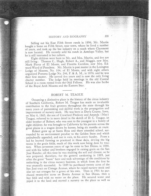 Photocopy from History of Pomona Valley, California with Biographical Sketches of The Leading Men and Women of the Valley Who Have Been Identified With Its Growth and Development from the Early Days to the Present