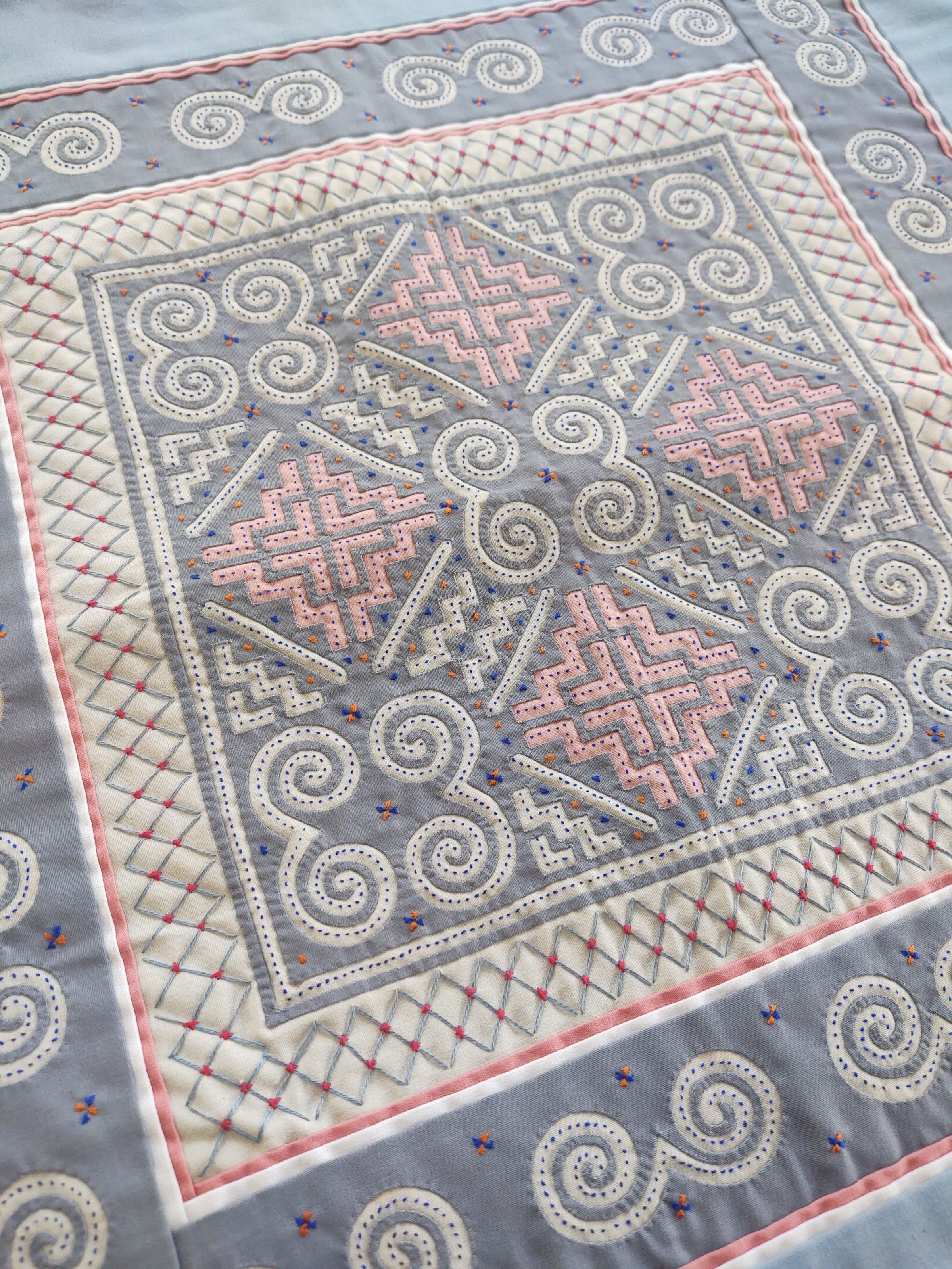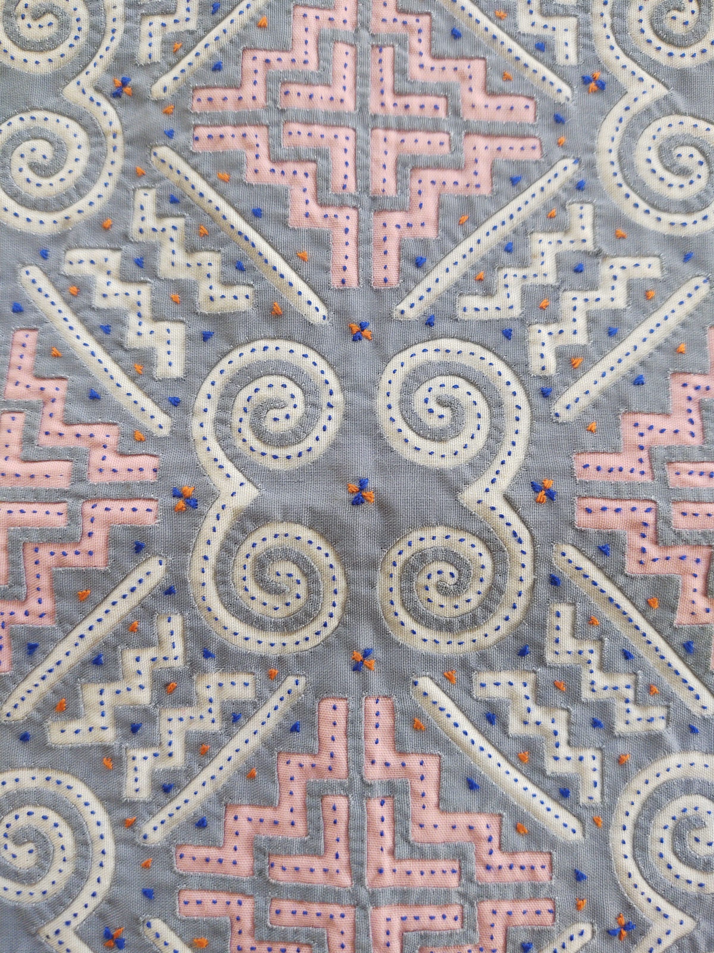 Hmong paj ntaub (pronounced "pahn-dow" - "flower cloth")