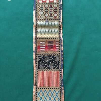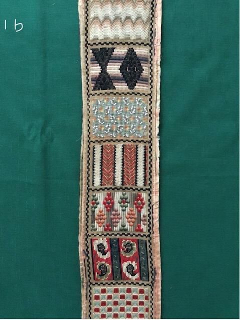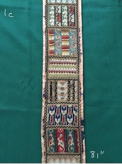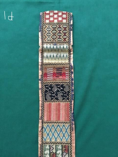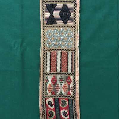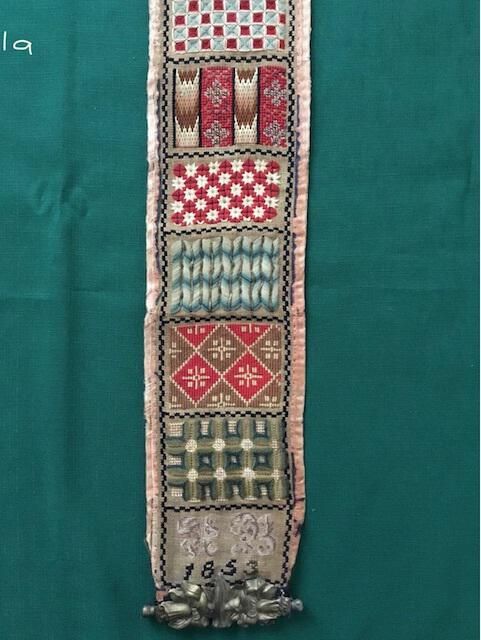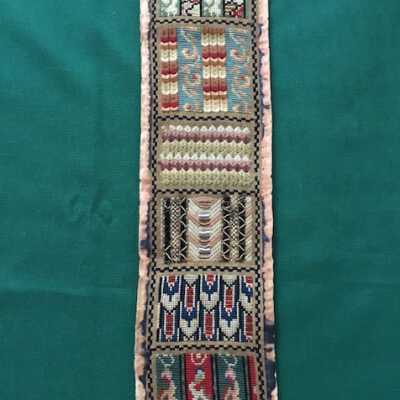 A Berlin Woolwork bell pull with bands of patterns running down it’s length. Provenance Charlene Tobin, acquired in Vermont in 1982.